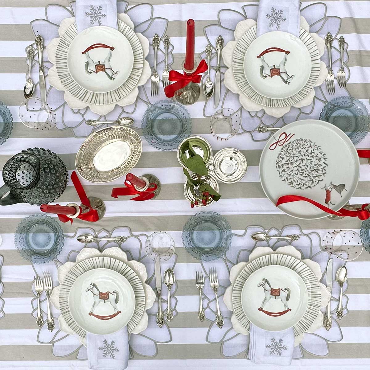 Juego de 4 platos para ensalada con imagen de un caballito mecedora navideño de madera, de porcelana de 20 cm diseñados en exclusiva para ZASH