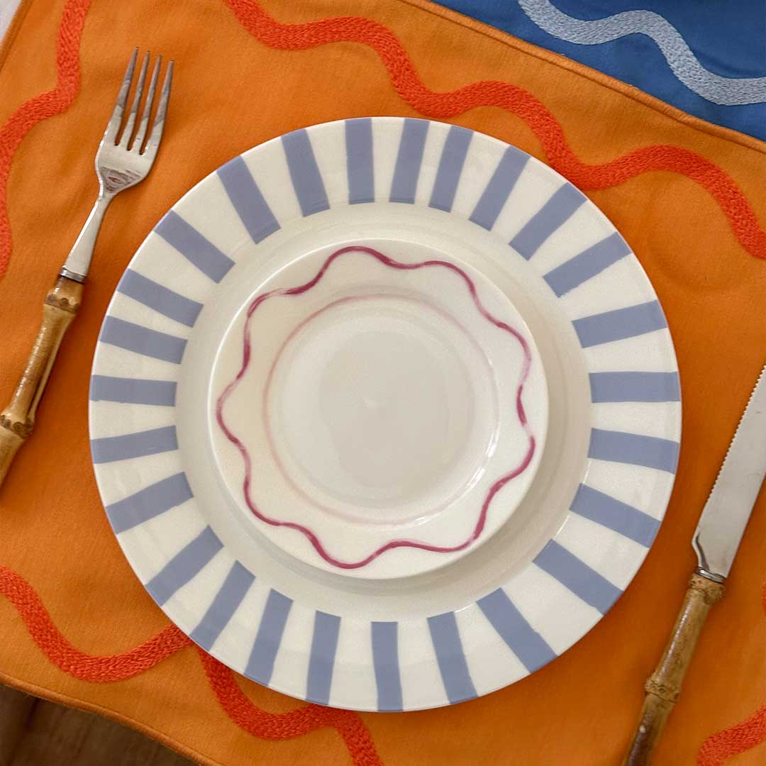Plato para Pan con Ondas en Rosa Fuerte y Anillo Rosa Claro. Set de 4