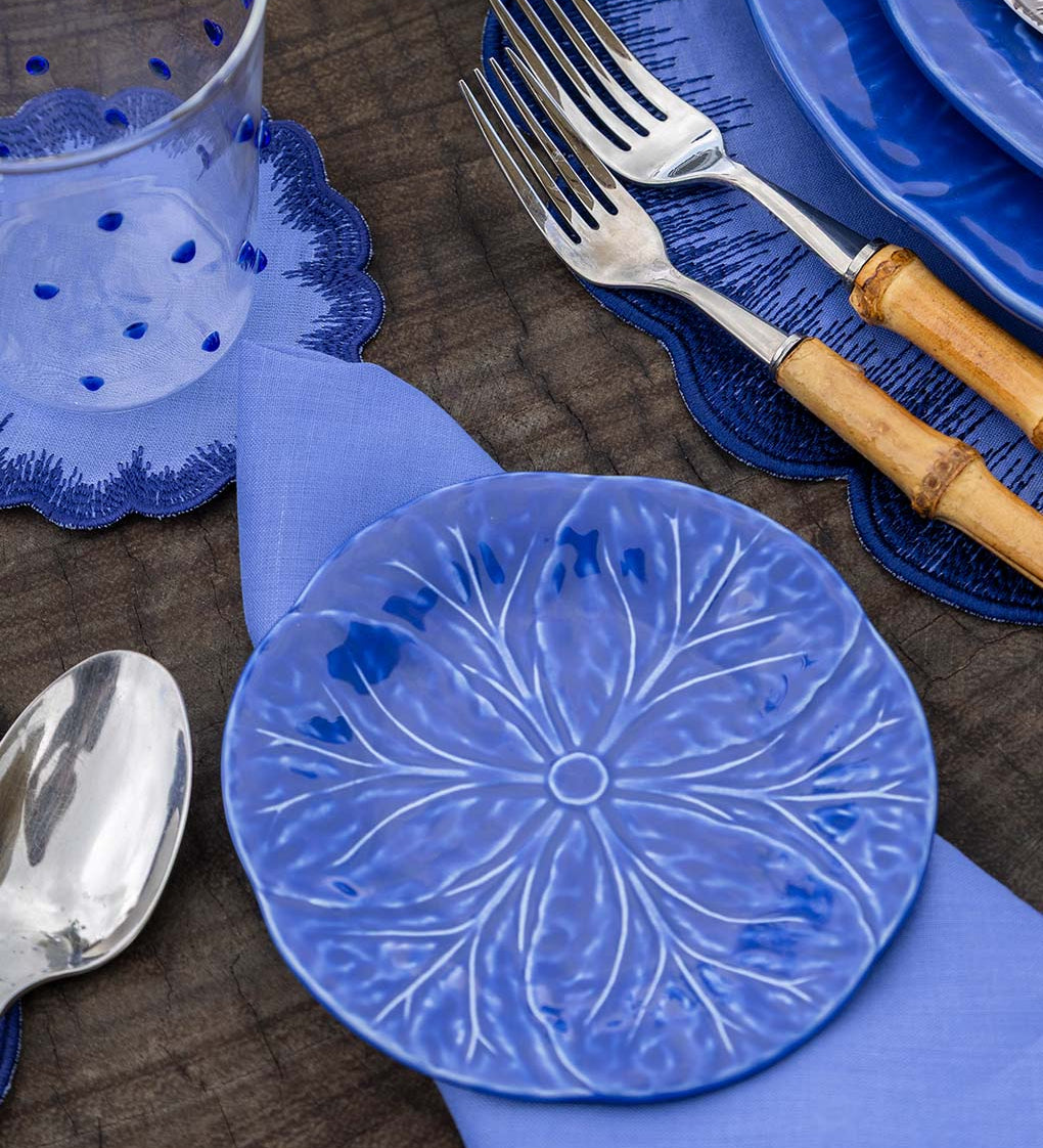 Plato Pan de Repollo Azul Cobalto. Set de 4