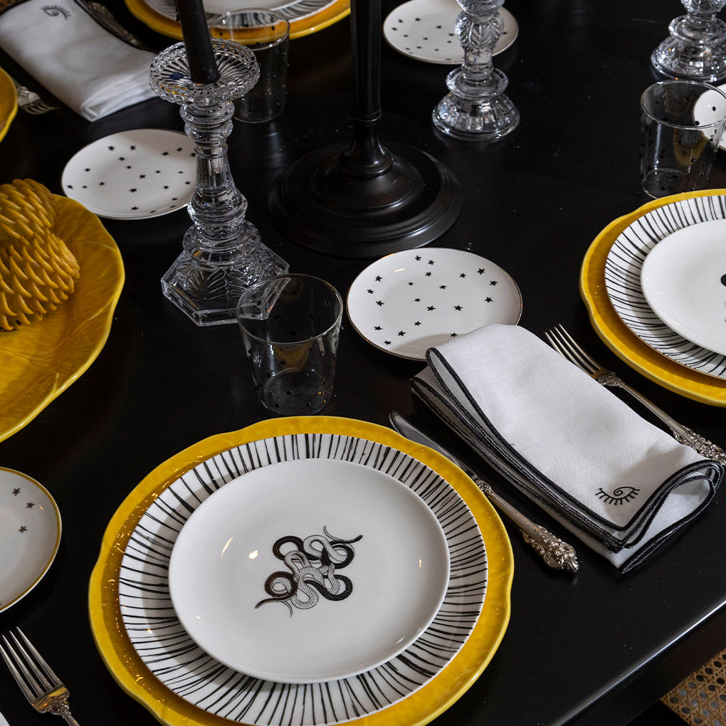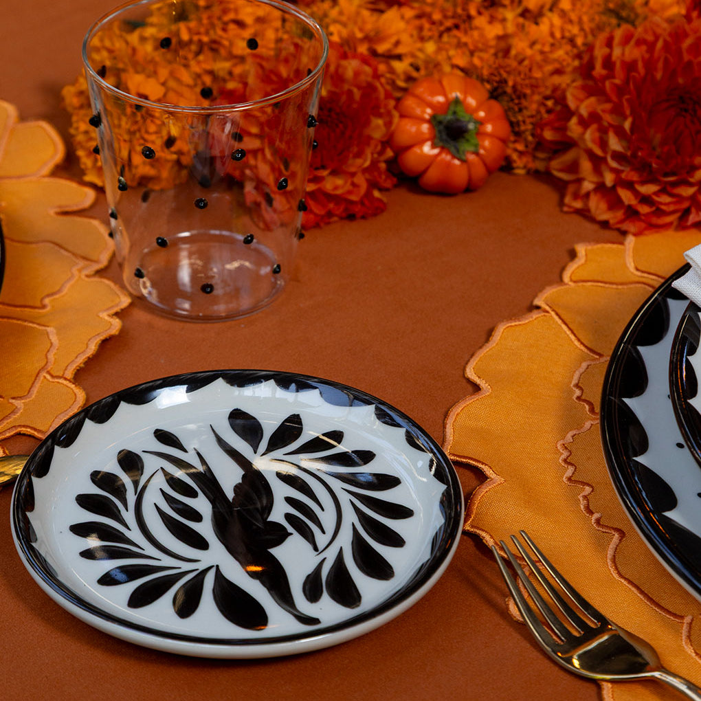 Platos para Pan Puebla de 15 cm en Blanco y Negro. Set de 4