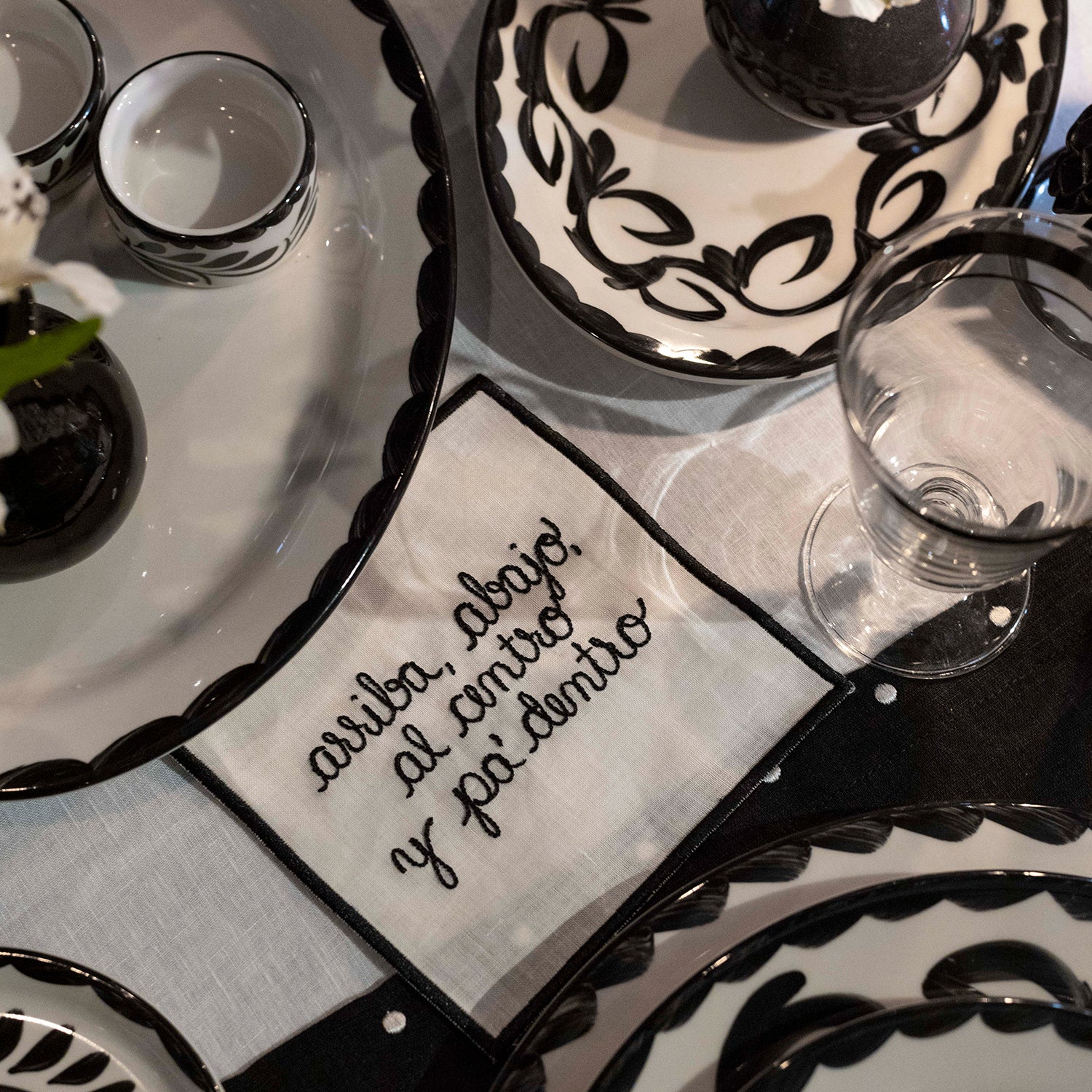Platon para servir ovalado mediano de 31 cm de cerámica blanco con orilla decorado en negro, artesanal de Anfora para Zash