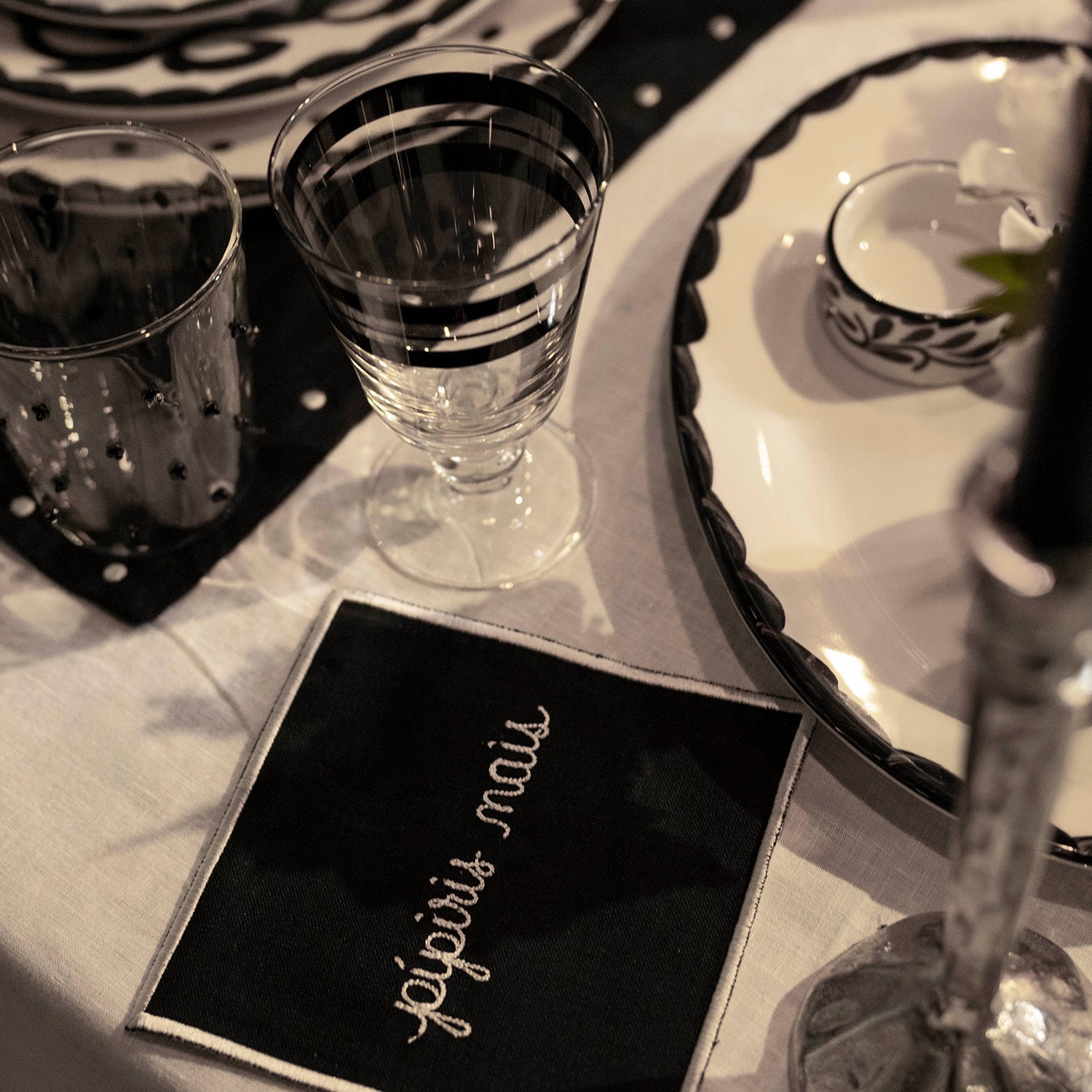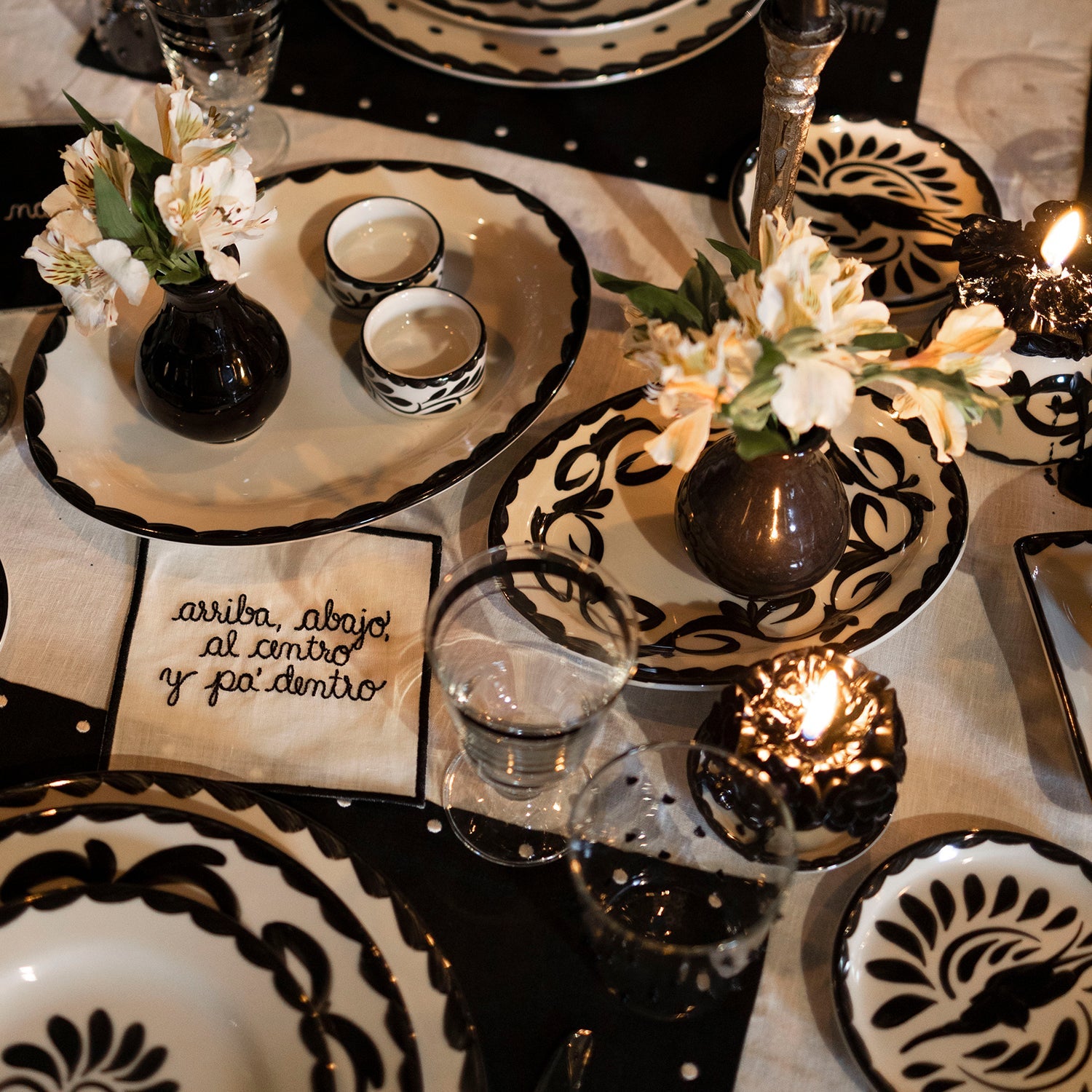 Platón ovalado de cerámica con orilla pintada a mano en negro, hecho en México
