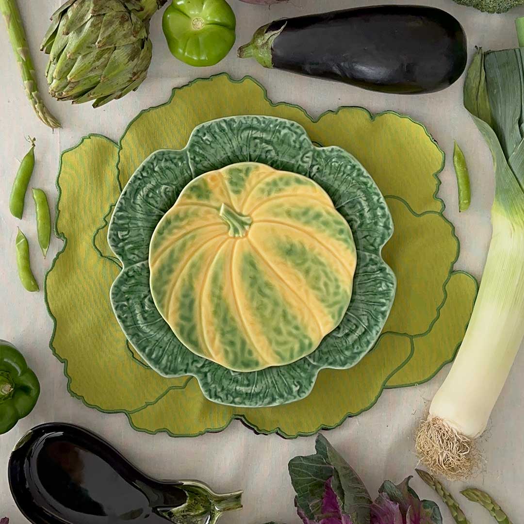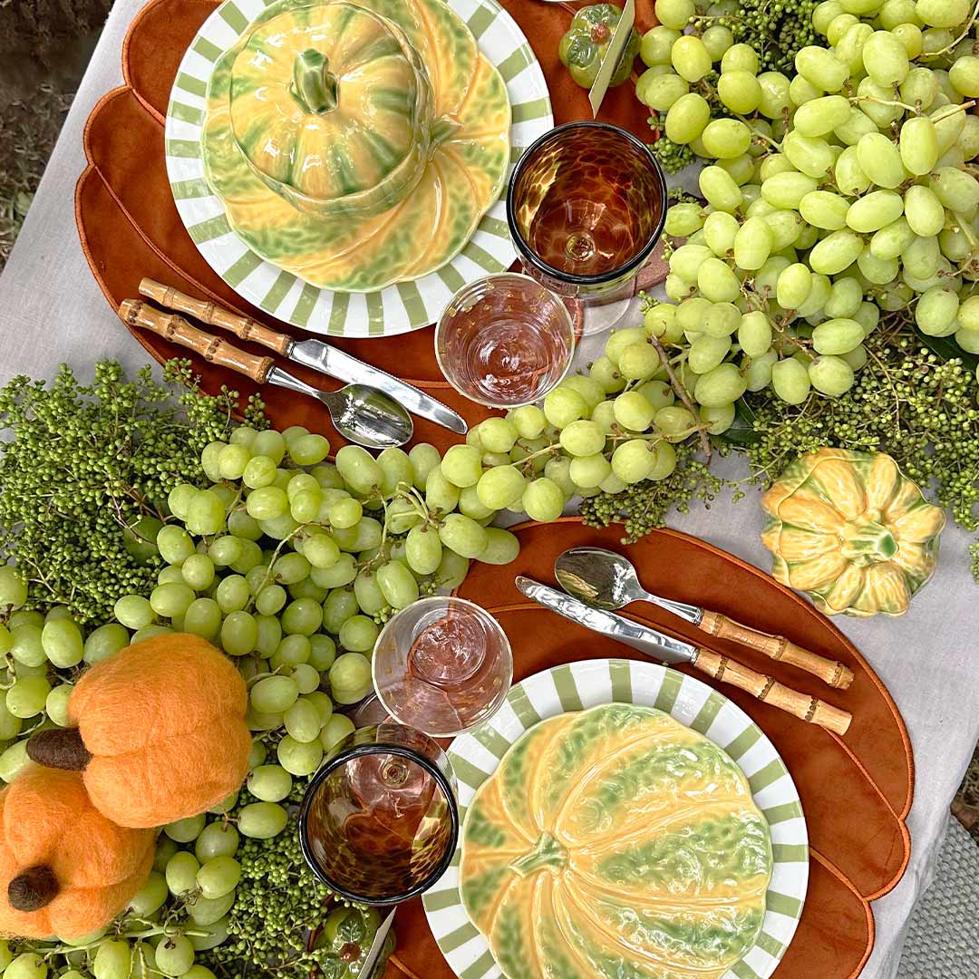 Porta Tarjetas para personalizar lugares en forma de Calabaza en Cerámica Verde, Set de 4