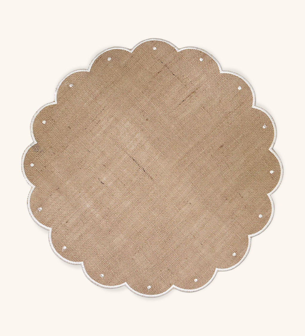 Individual Big Daisy de Yute con Orilla Bordada en Ivory. Set de 4