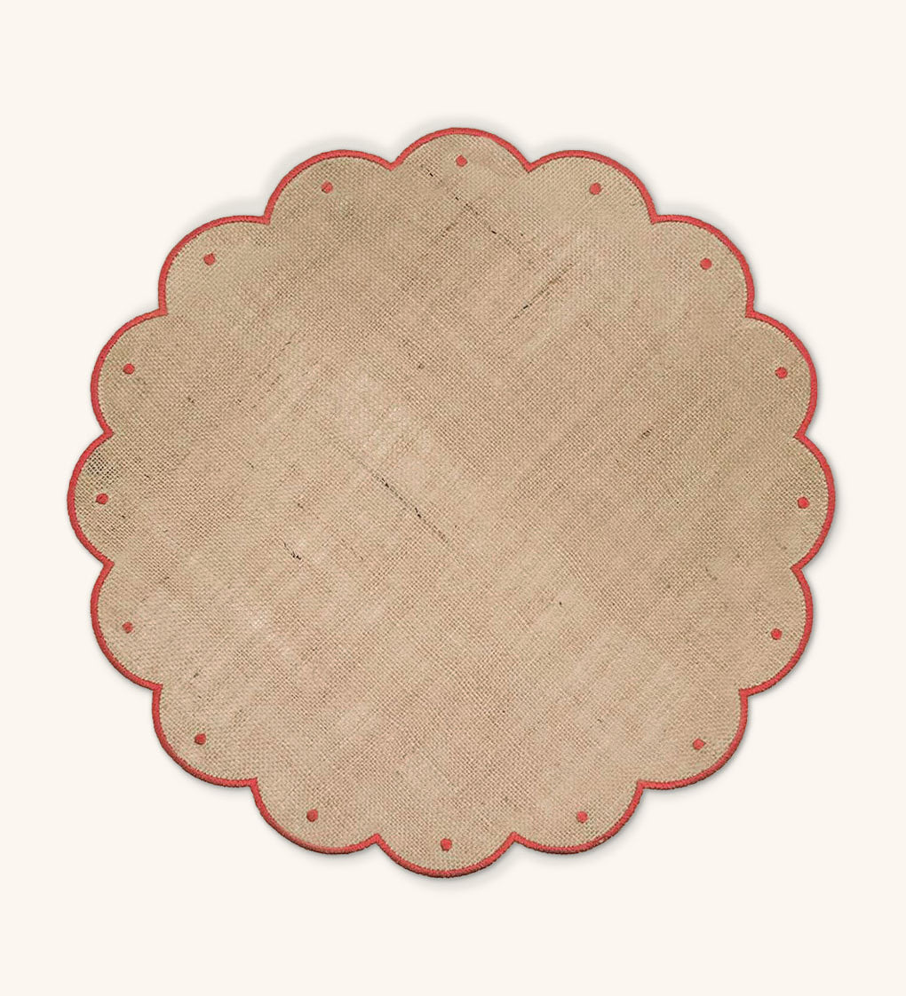 Individual Big Daisy de Yute con Orilla Bordada en Rojo. Set de 4