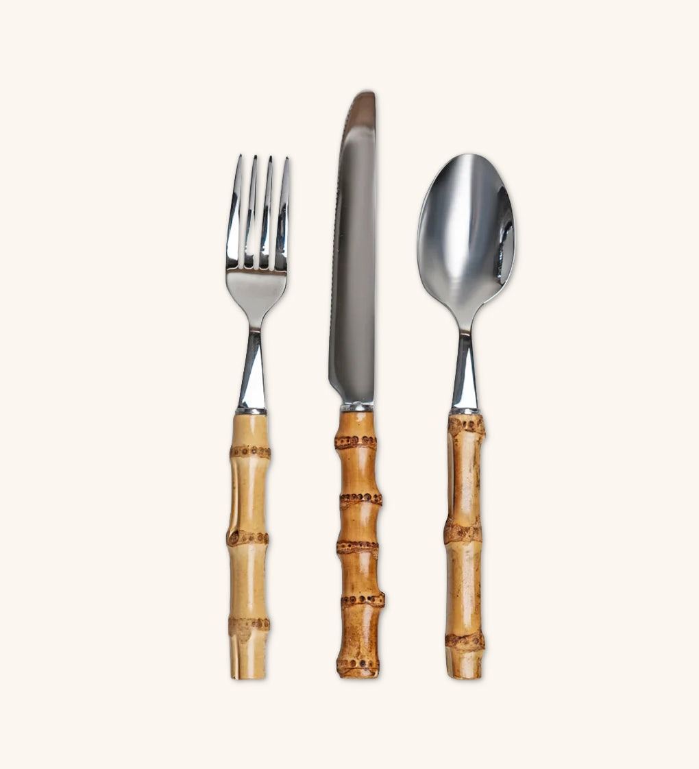 Juego de 3 Cubiertos de Bambú Natural para 4 personas (12 Piezas)