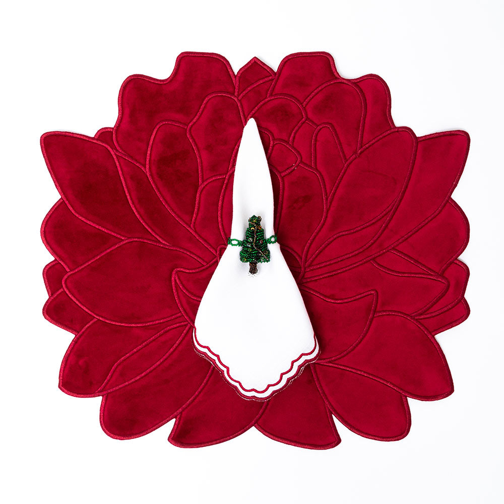 Individuales Blossom Bordado de Flor en Terciopelo Rojo. Set de 4