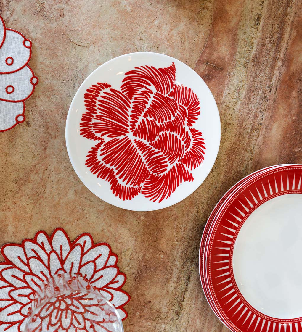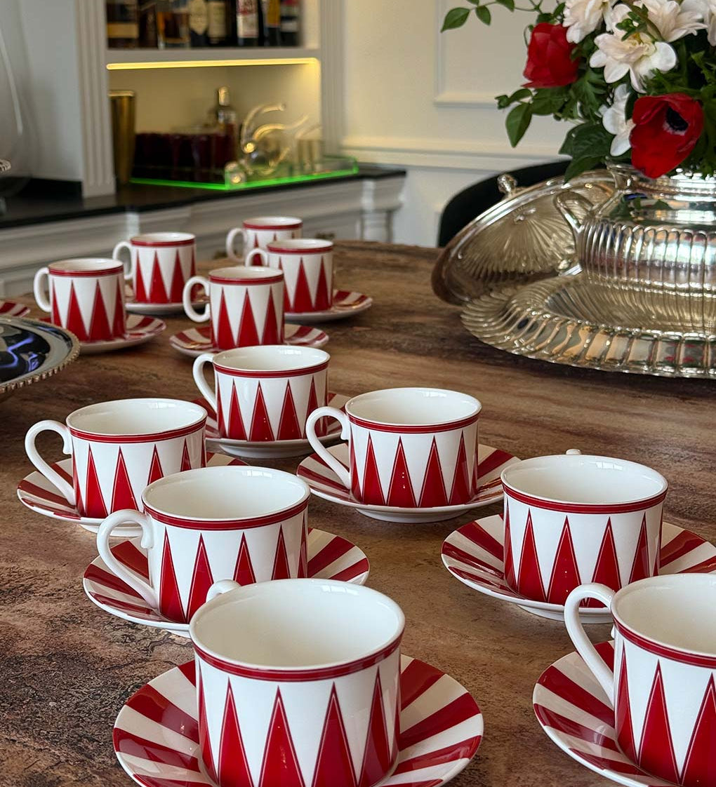 Tazas Té con Plato Identidad Rojo. Set de 4