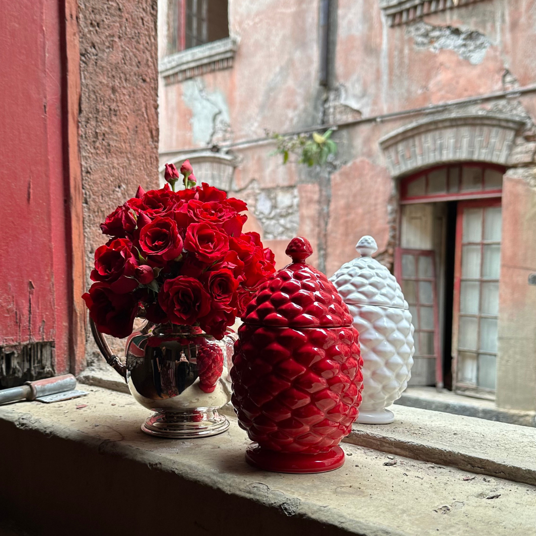 Copa de Agua Bicolor Calice Rojo y Base Transparente 1 Pieza