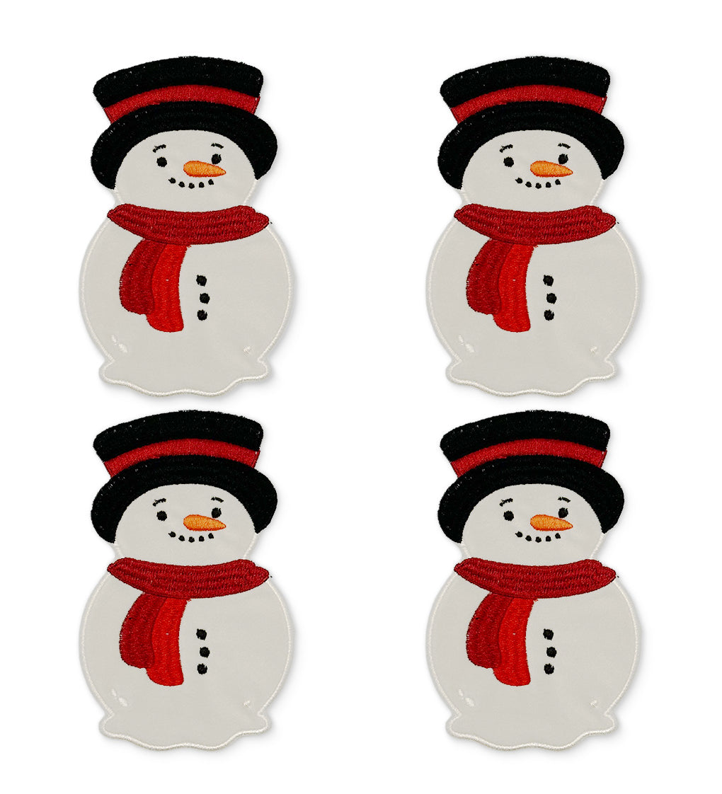 Cocteleras Snowman en Terciopelo Ivory con bordado de Muñeco de Nieve. Set de 4
