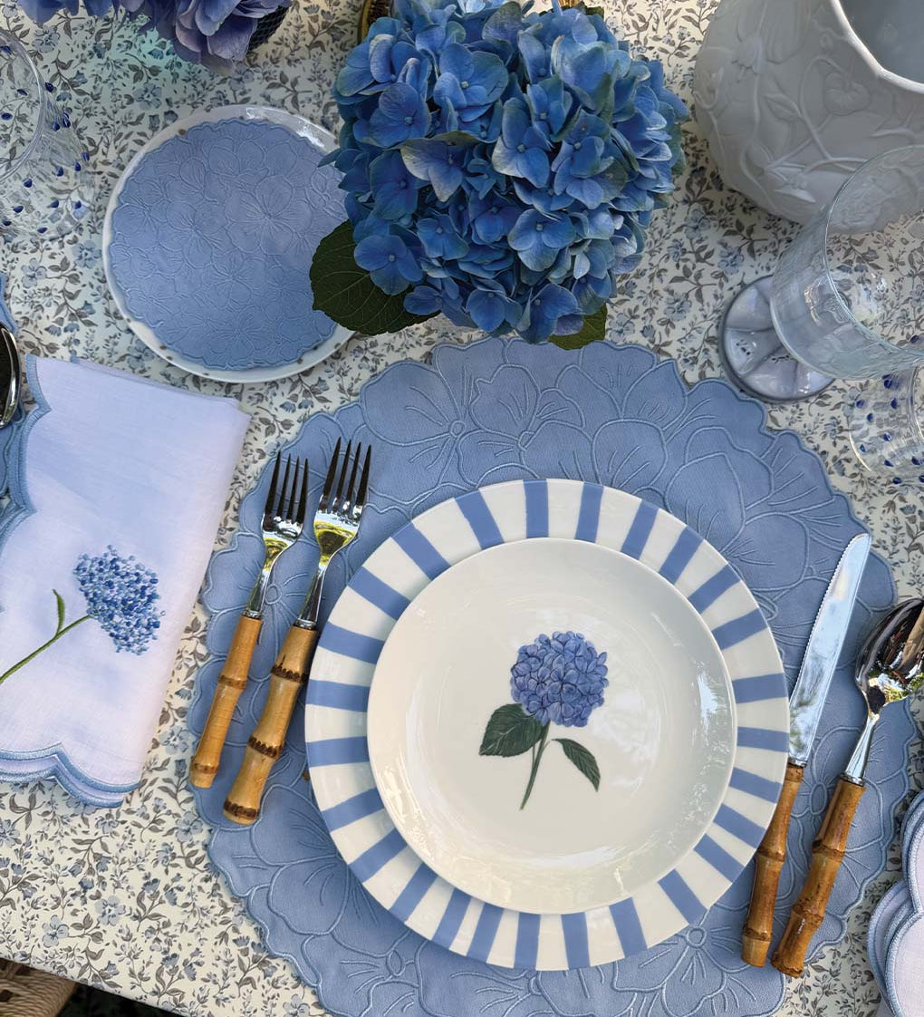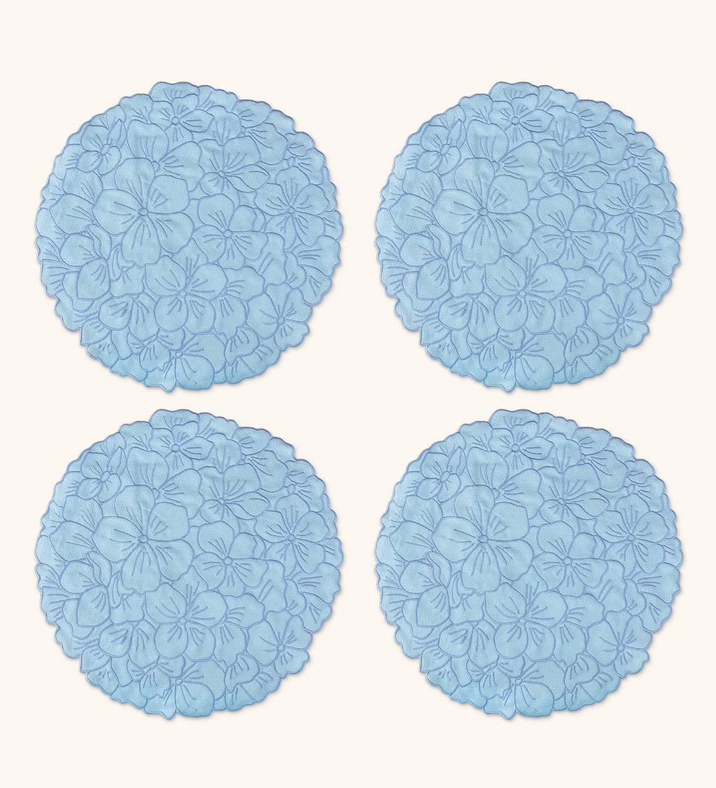 Coctelera Flor Hortensia en Loneta de Algodón Azul Pastel. Set de 4