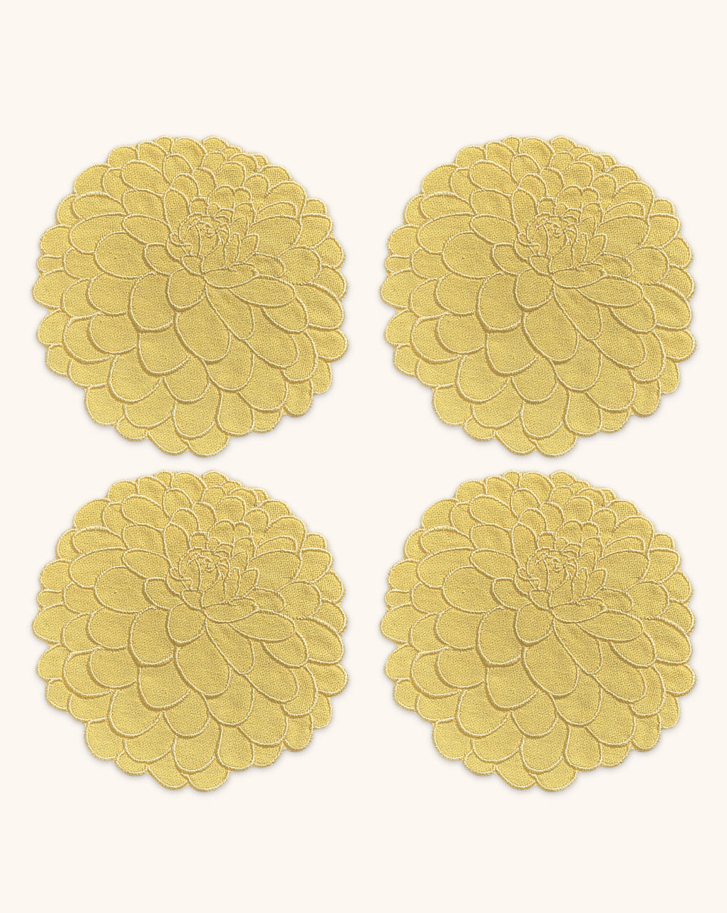 Cocteleras Flor Dalia en Loneta de Algodón Amarillo Pastel. Set de 4