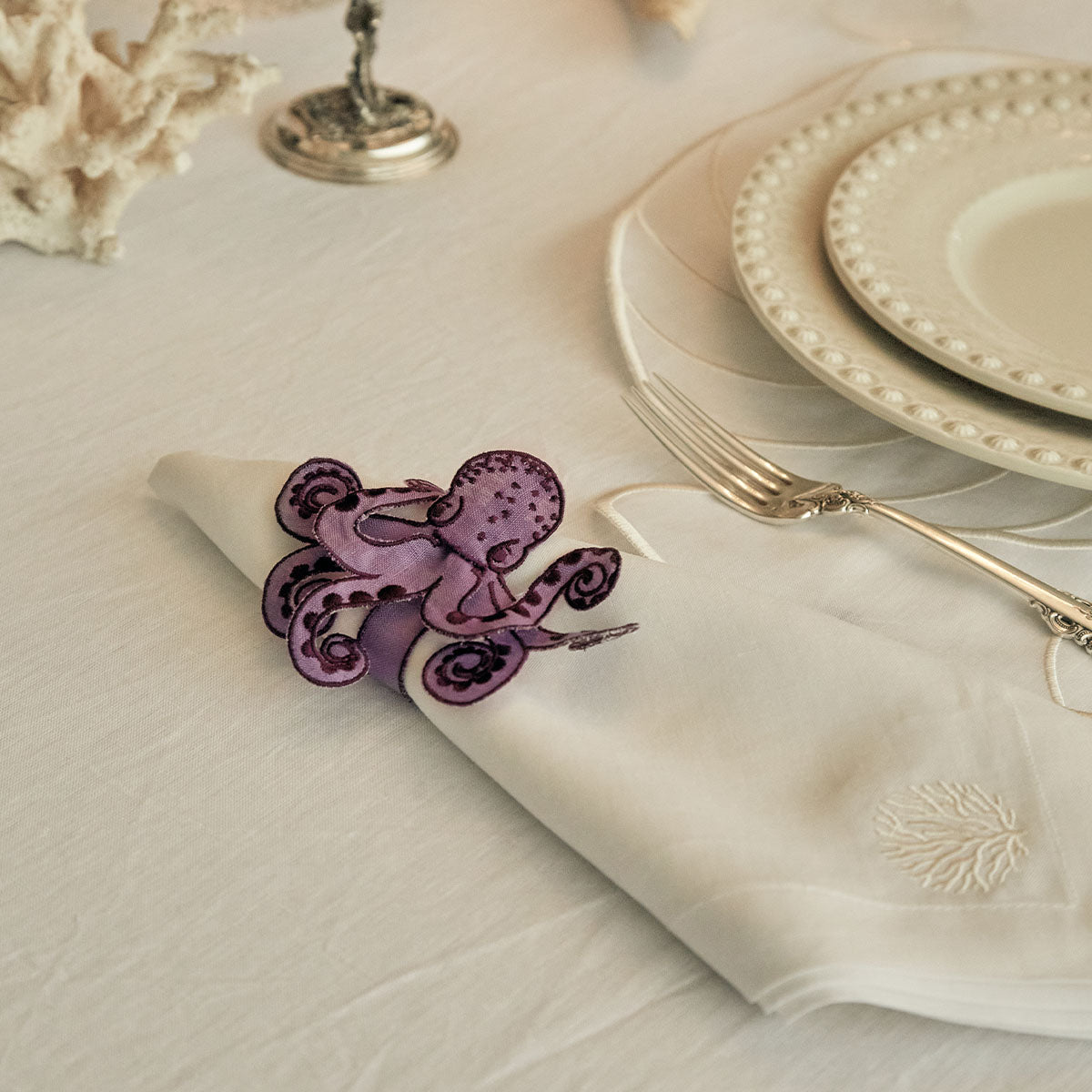 Servilletas La Mar en Lino Blanco con Bordado de Coral Ivory. Set de 4