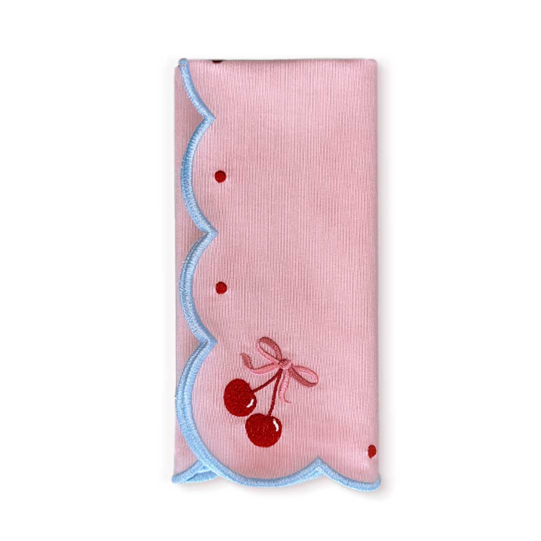 Servilletas Cherry en Algodón Rosa con Bordado de Moño y Cerecitas. Set de 4.