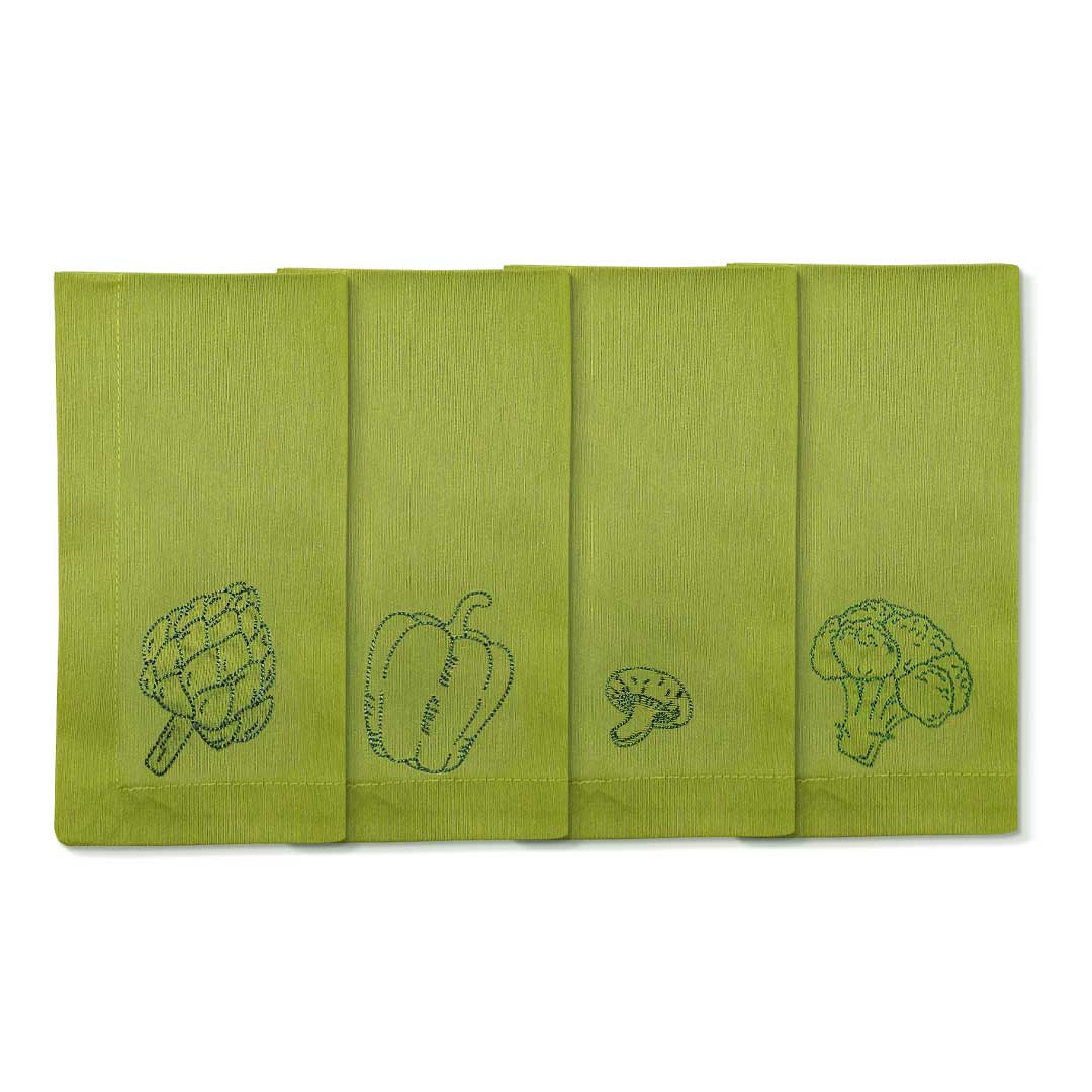 Servilletas Veggies en Algodón Verde Bordado con Verduras. Set de 4