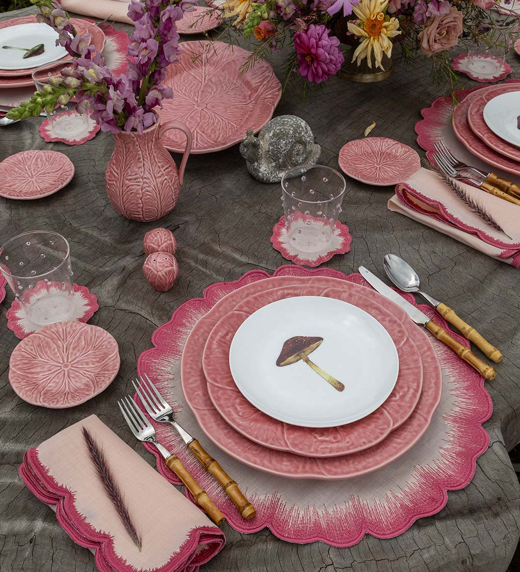Servilletas Vivi en Lino Rosa con Bordado de Pelitos. Set de 4