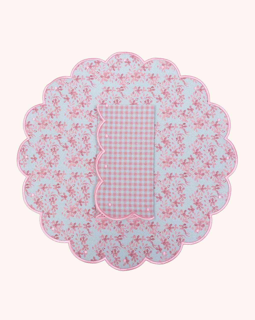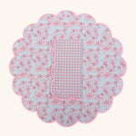 Set de 4 Individuales con Servilletas Big Daisy Rosa y Verde con Orilla Bordada