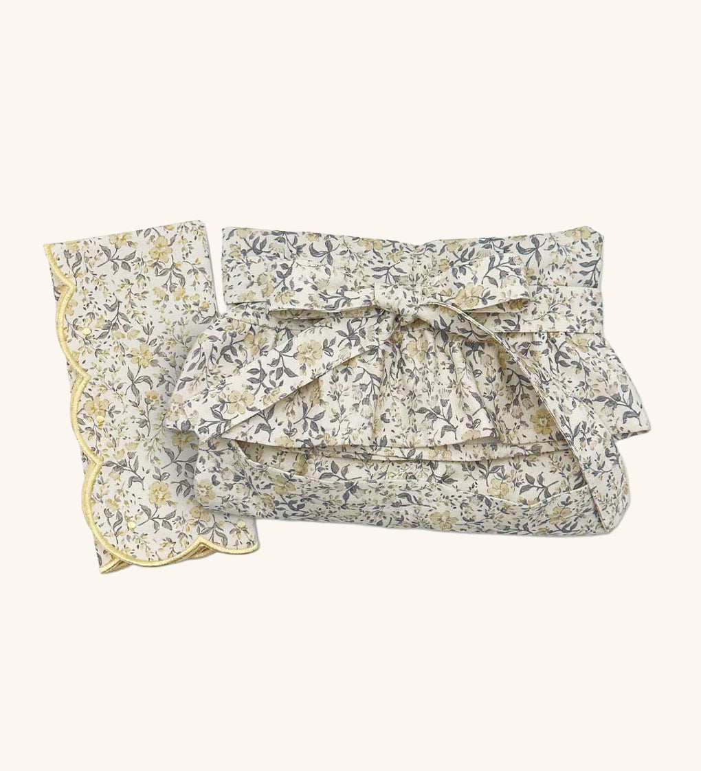 Servilletas Daisy de Algodón con Florecitas Amarillo, Set de 4 y 1 Delantal de Florecitas Amarillo