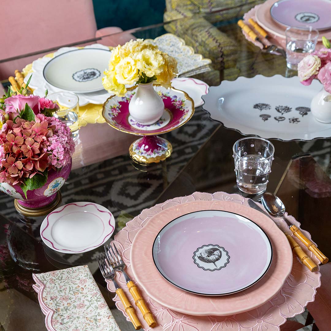 Juego de Taza con Platito para Té Herbariae Rosa. Set de 4