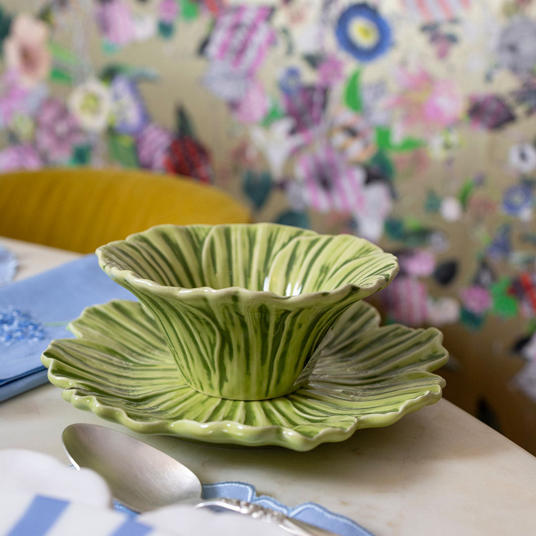 Plato Ensalada Margarita Verde con Amarillo. Set de 4.