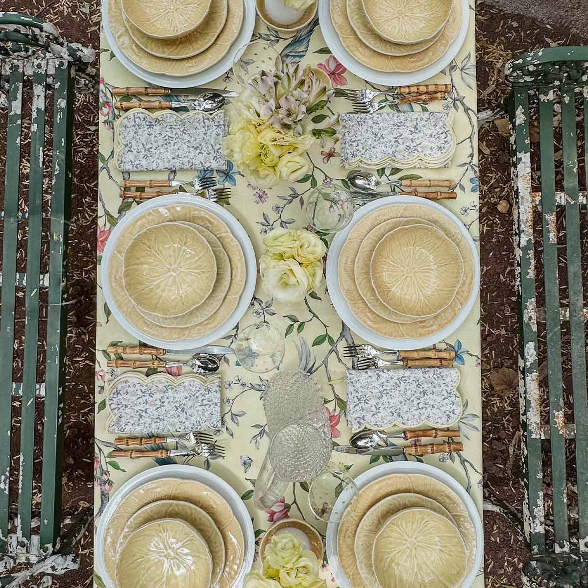 Individuales Bouquet en Algodón Amarillo con Bordado de Hortensia. Set de 4