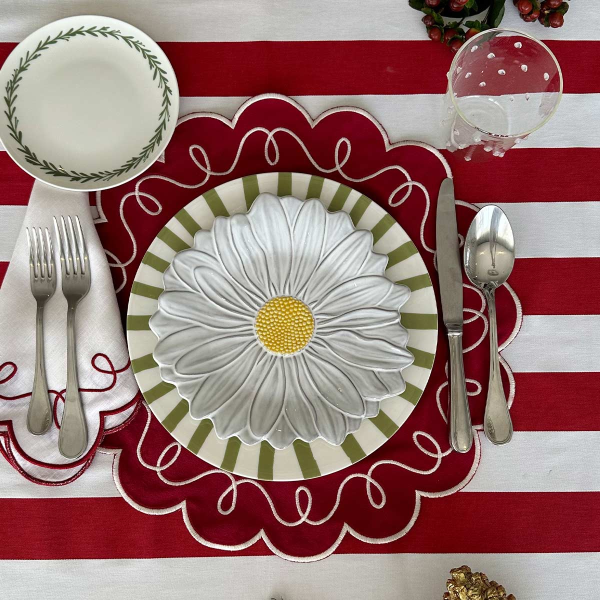 Bajo Plato Margaritas Verdes y Amarillo. Set de 4