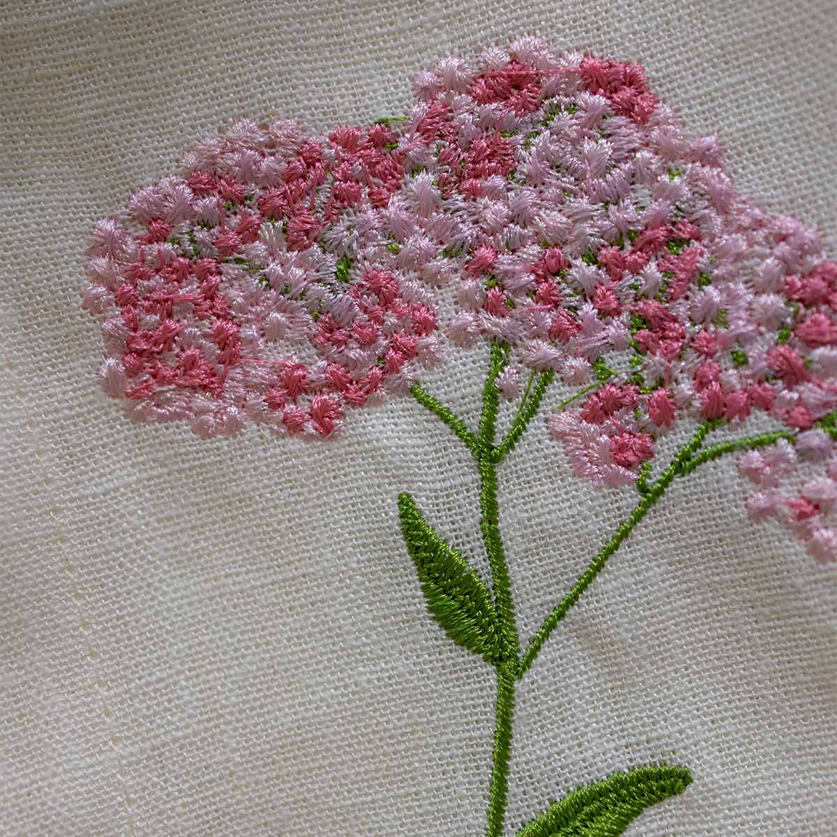 Individuales Bouquet en Algodón Rosa con Bordado de Hortensia. Set de 4