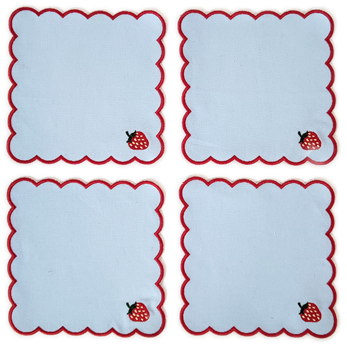 Servilletas de Coctel Big Daisy color Azul Plumbago con Orilla y Fresita Bordada, set 4