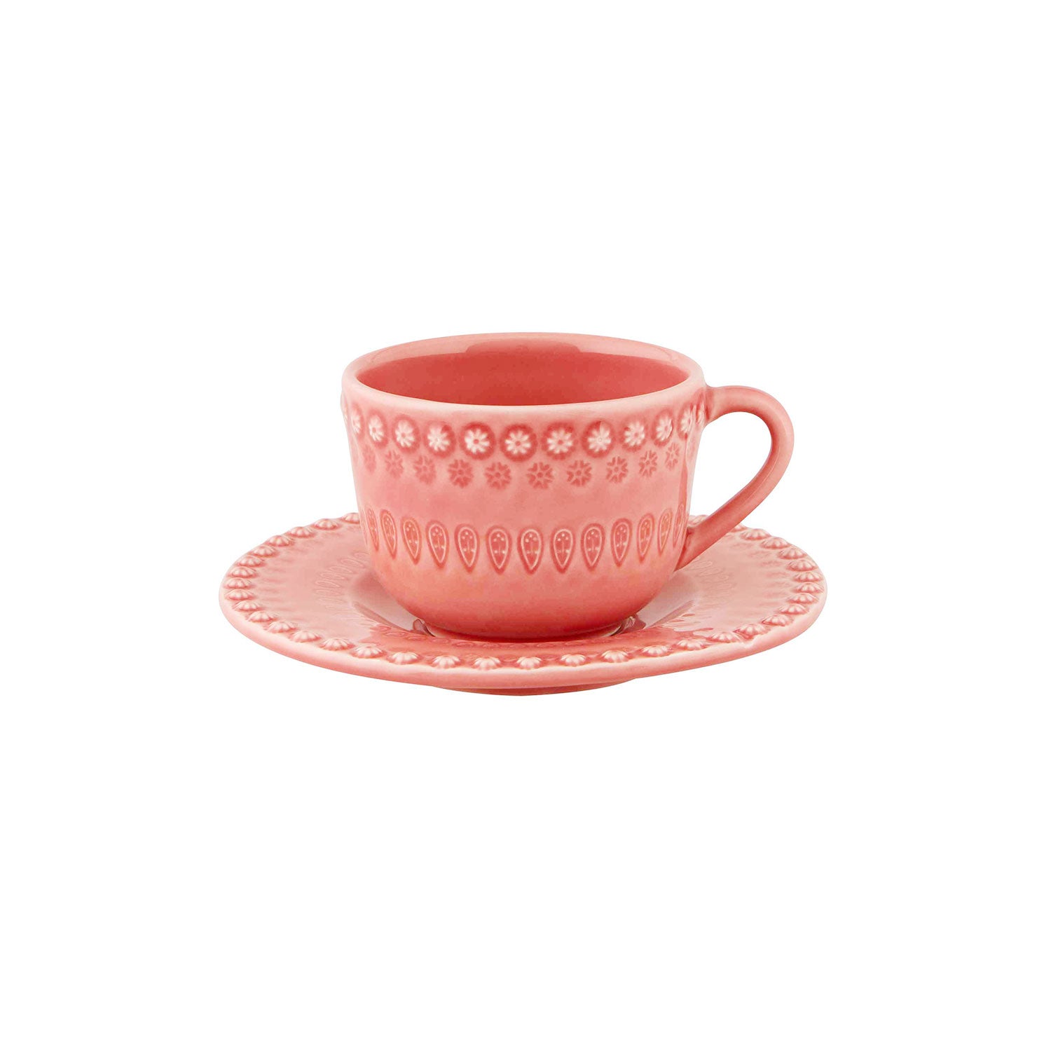 Juego de Taza con Platito para Té Herbariae Rosa. Set de 4