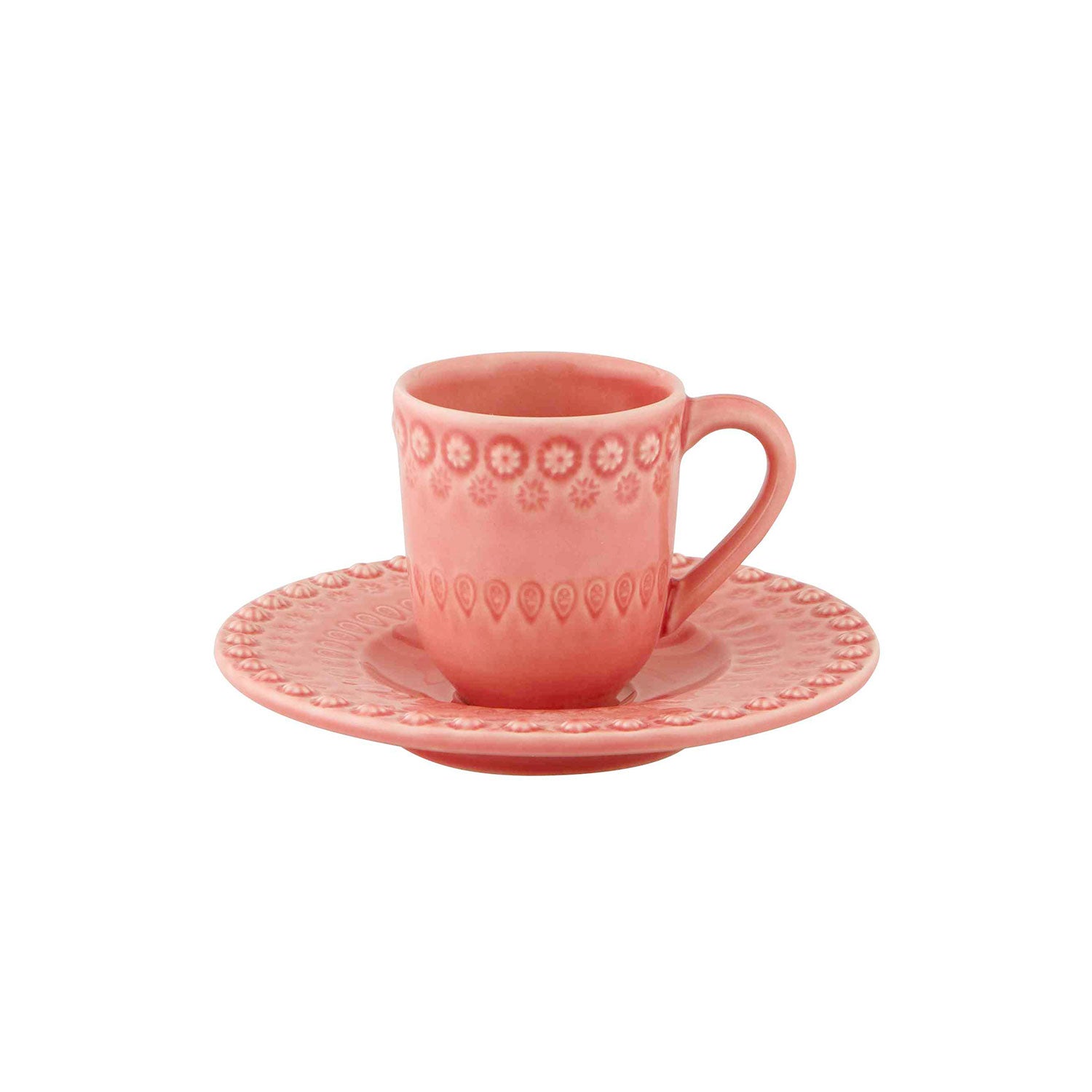 Tazas de Café con Platito Fantasía Rosa. Set de 4