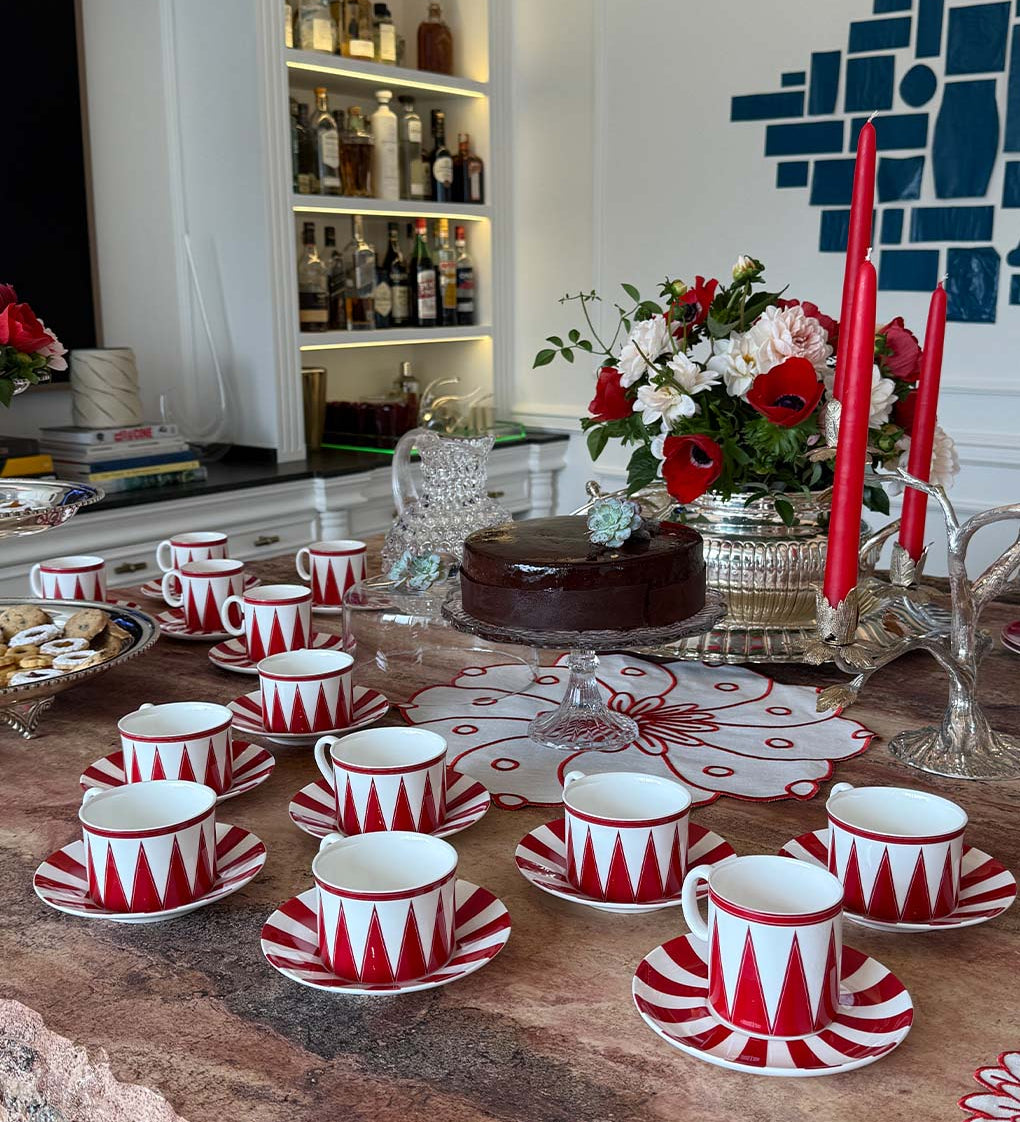 Tazas Té con Plato Identidad Rojo. Set de 4