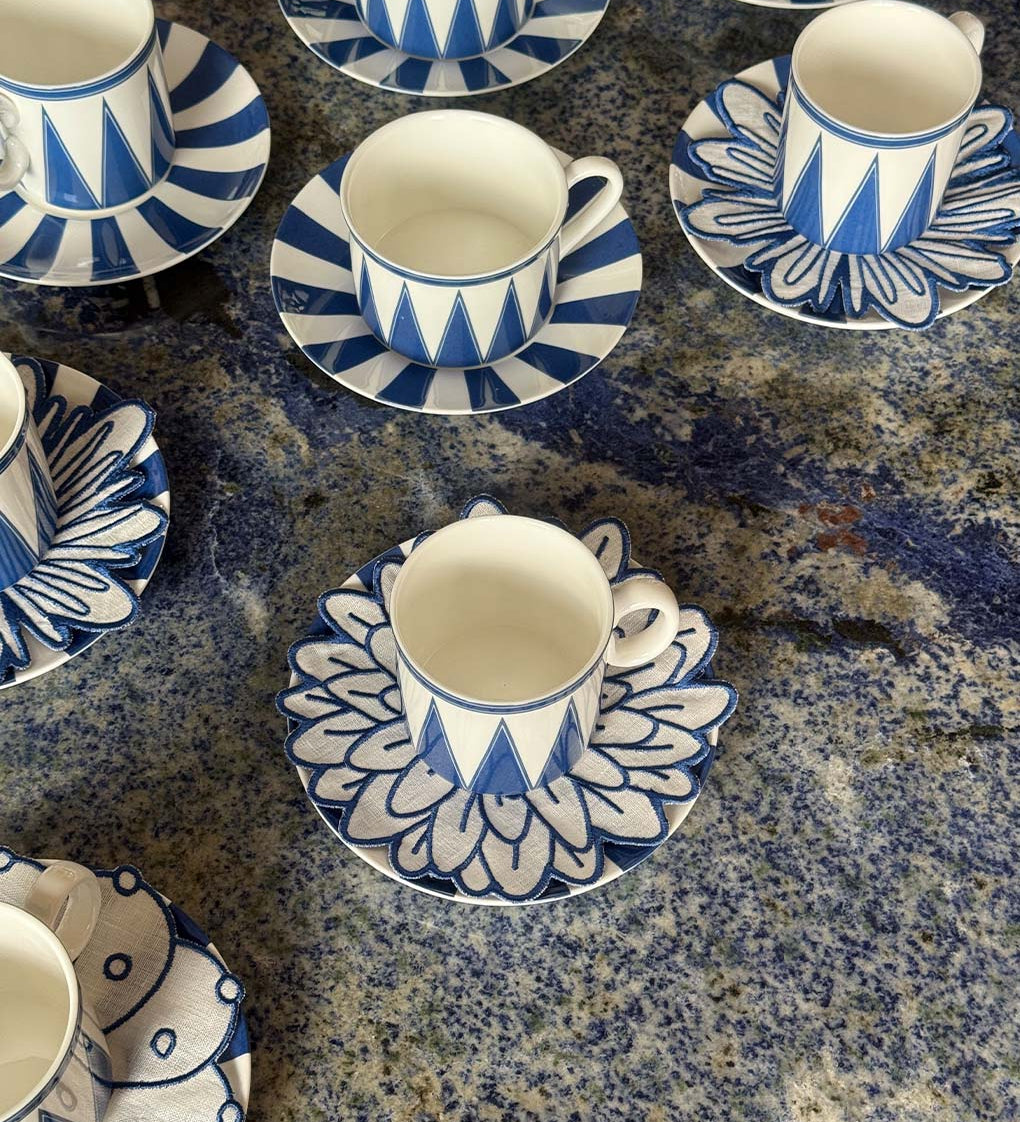 Tazas Espresso con Plato Identidad Azul. Set de 4