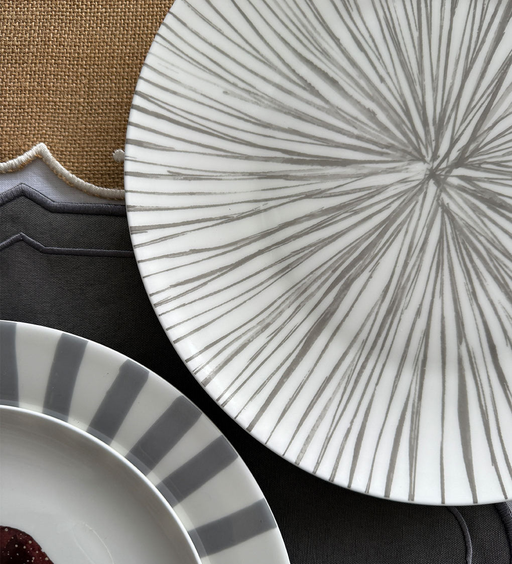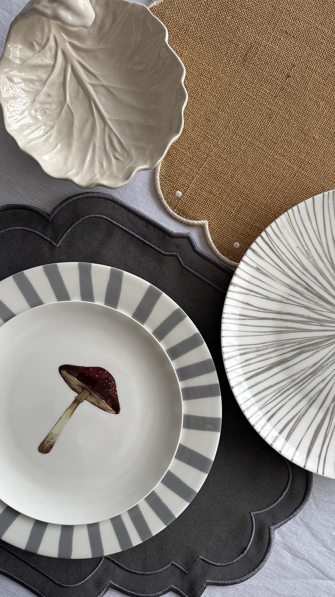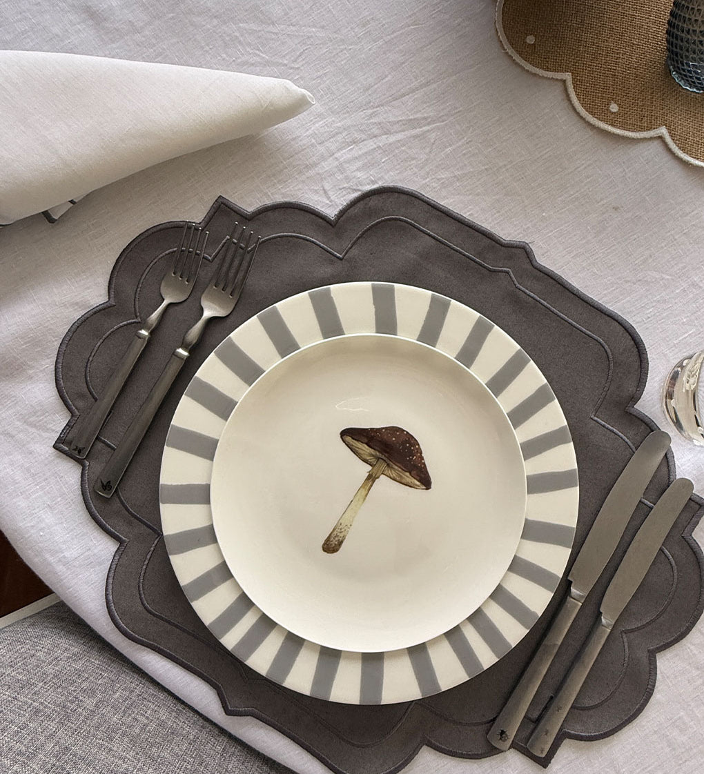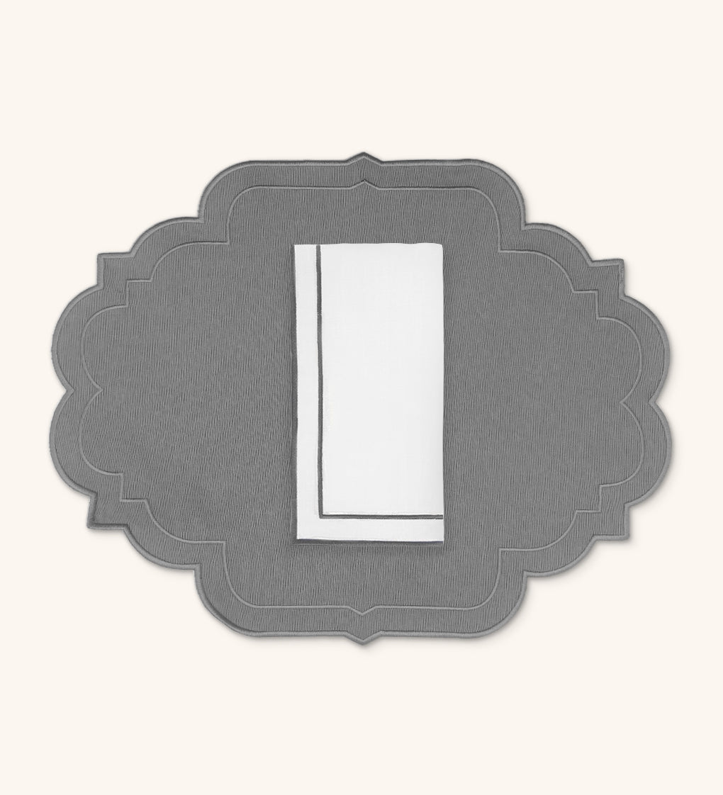 Individuales Hannah en Algodon Gris Oxford con Bordado Gris Set de 4