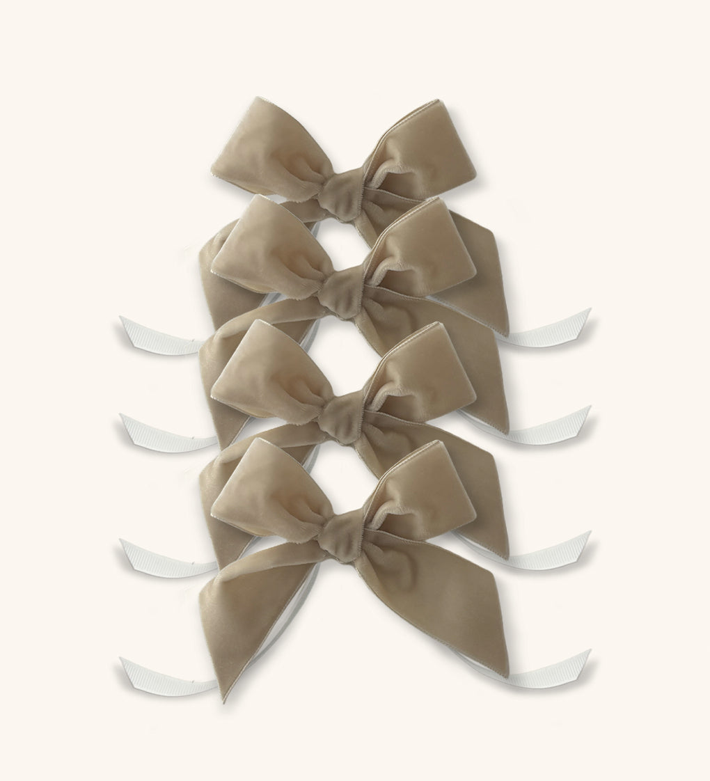 Servilleteros Moño de Terciopelo Beige 36mm. Set de 4