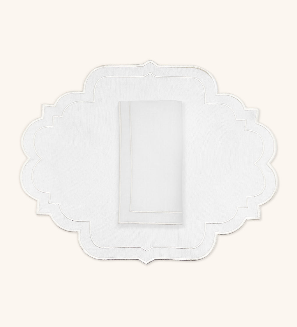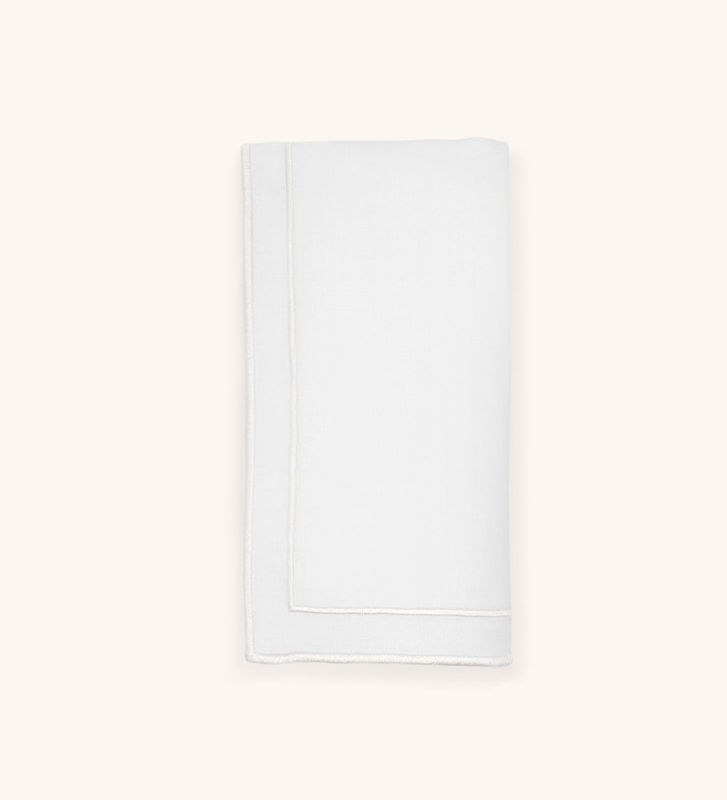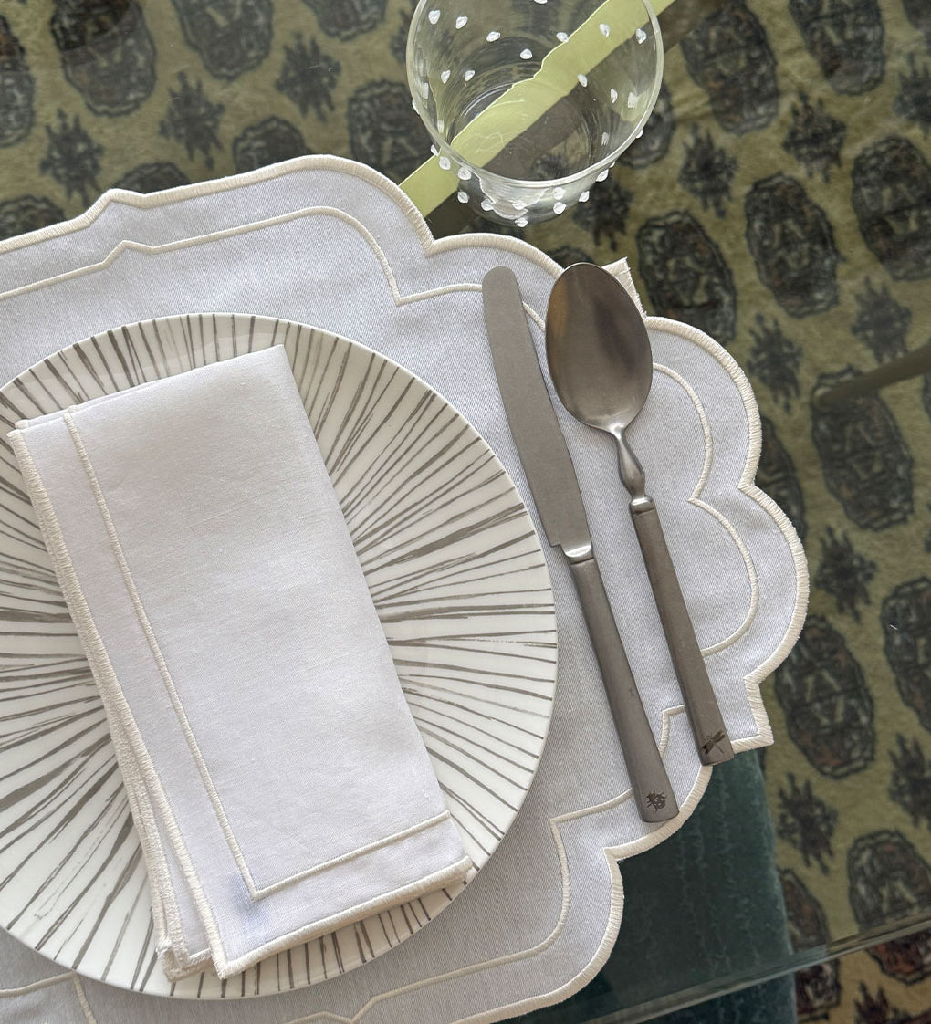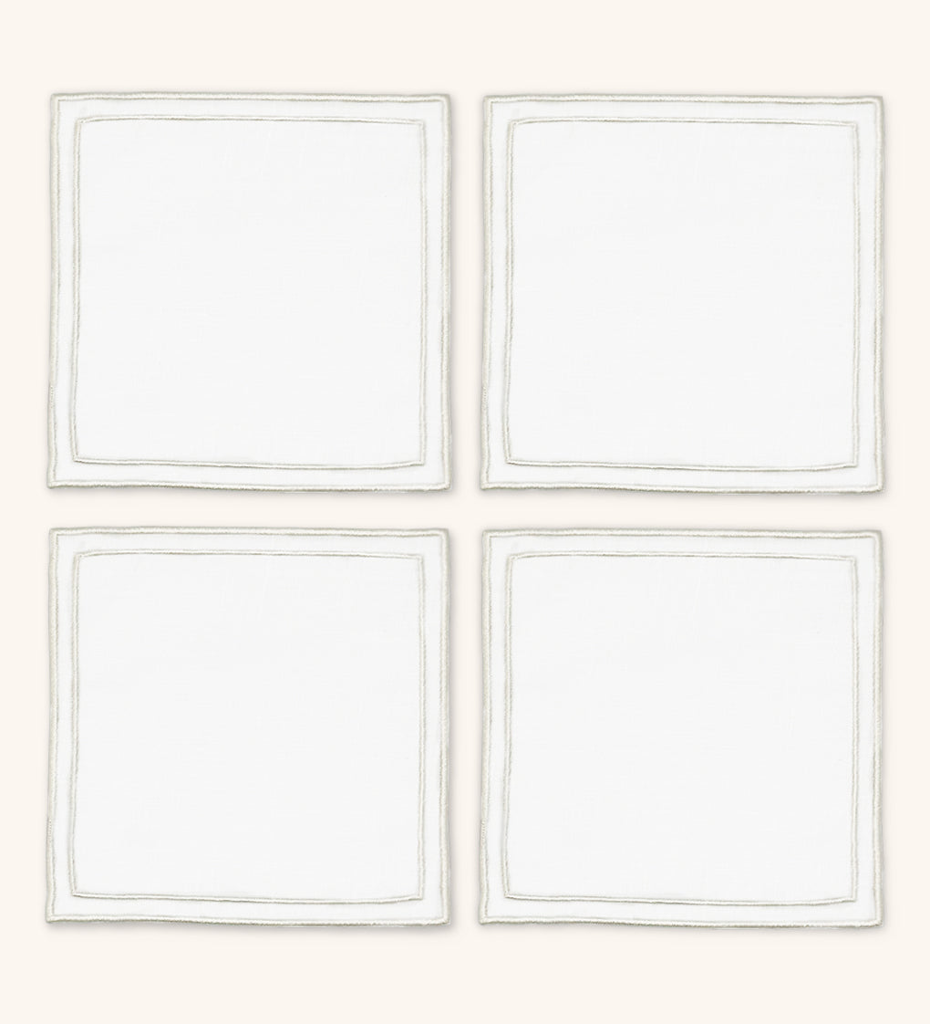 Servilletas Jimmy en Lino Blanco con Bordado Ivory. Set de 4