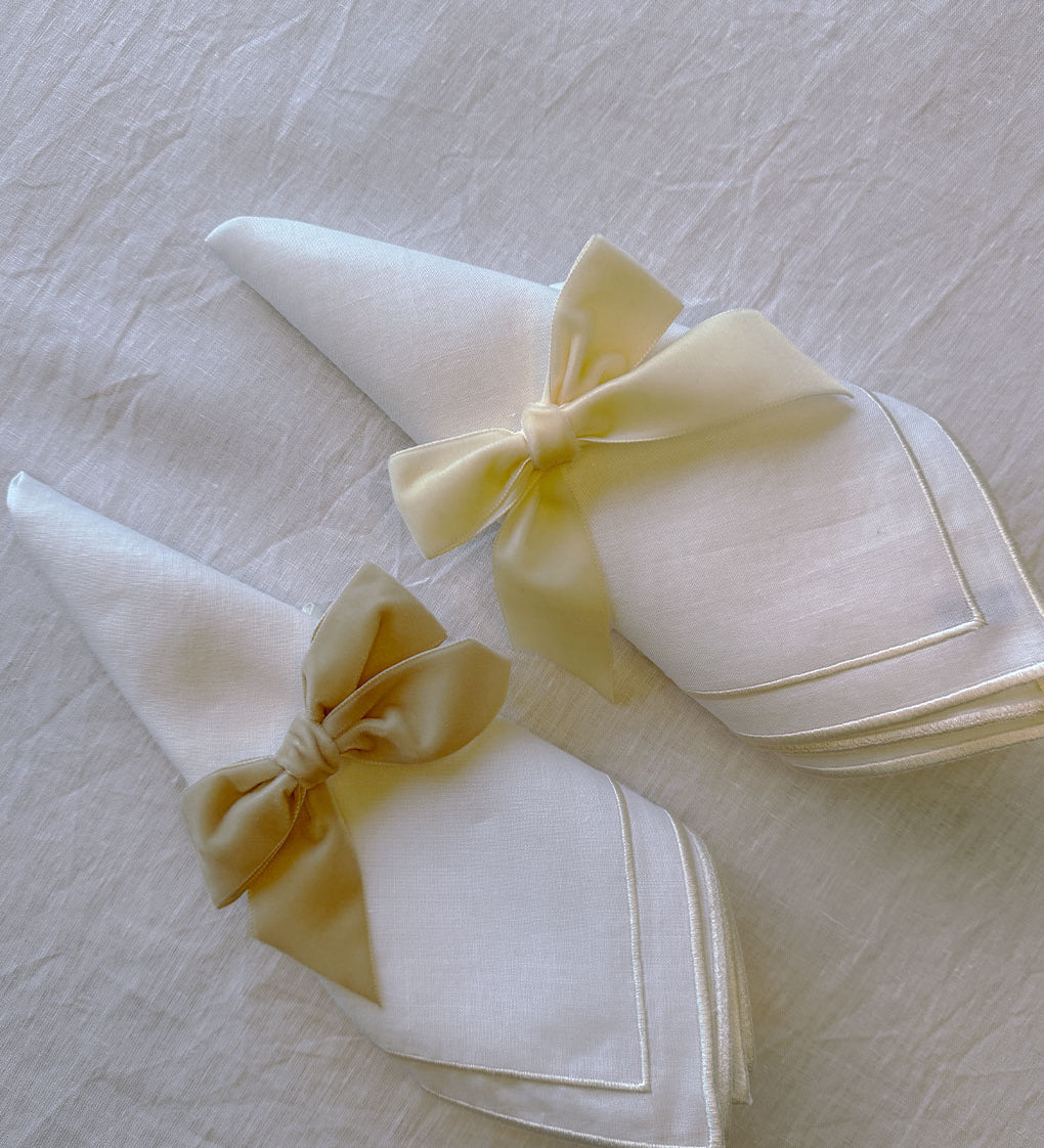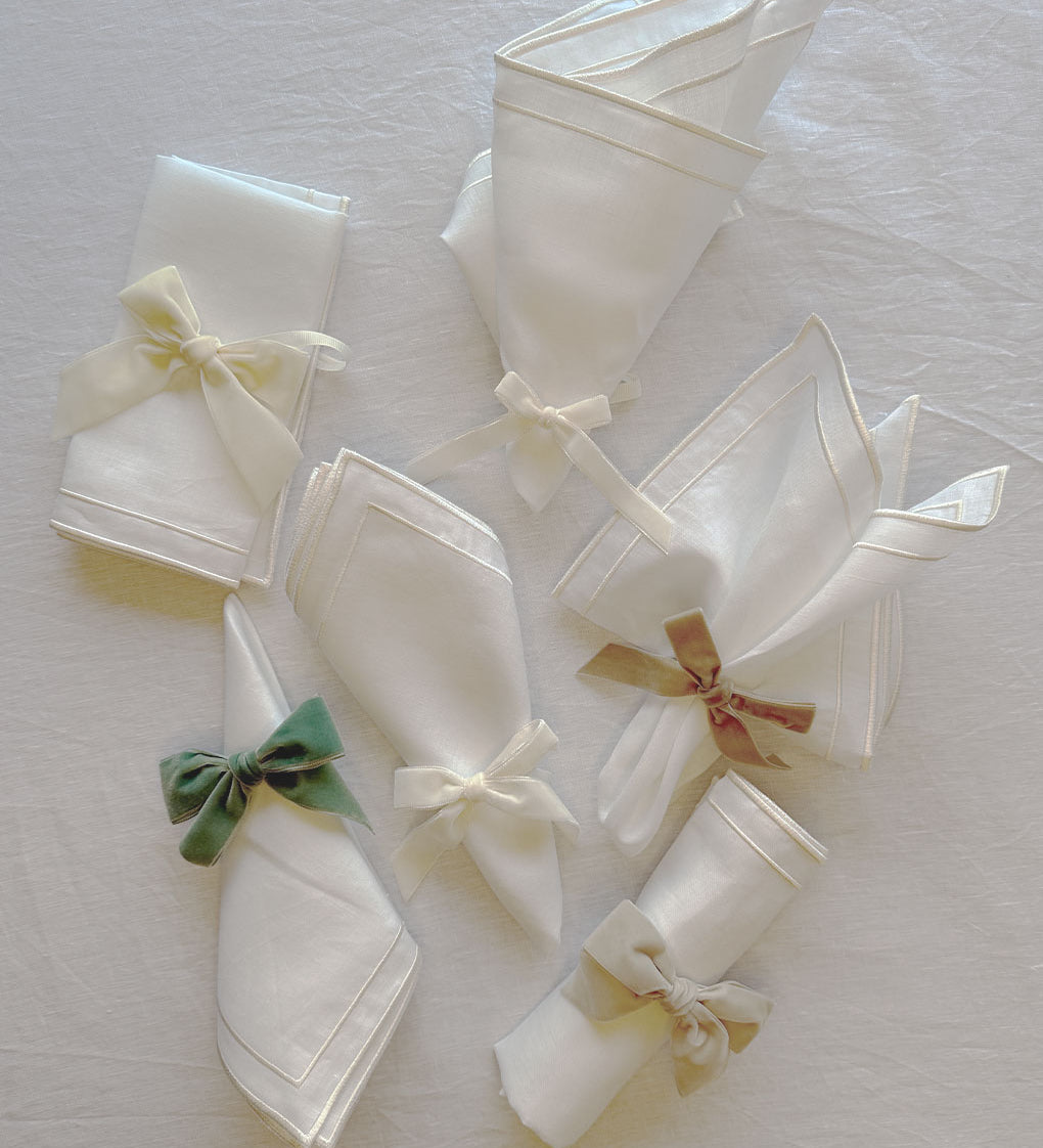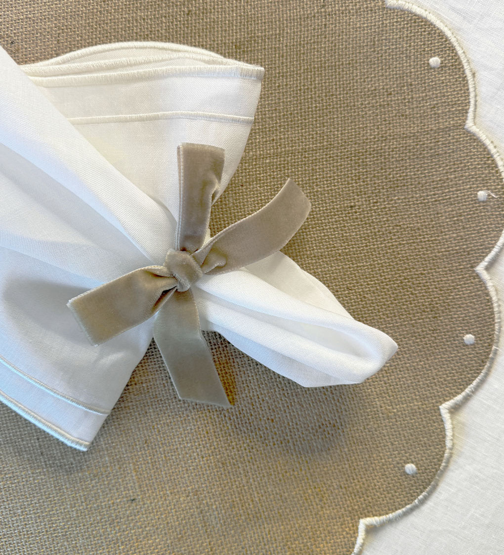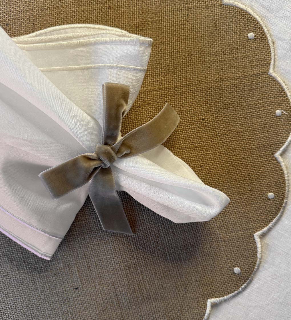 Servilleteros Moño de Terciopelo Ivory 16mm. Set de 4