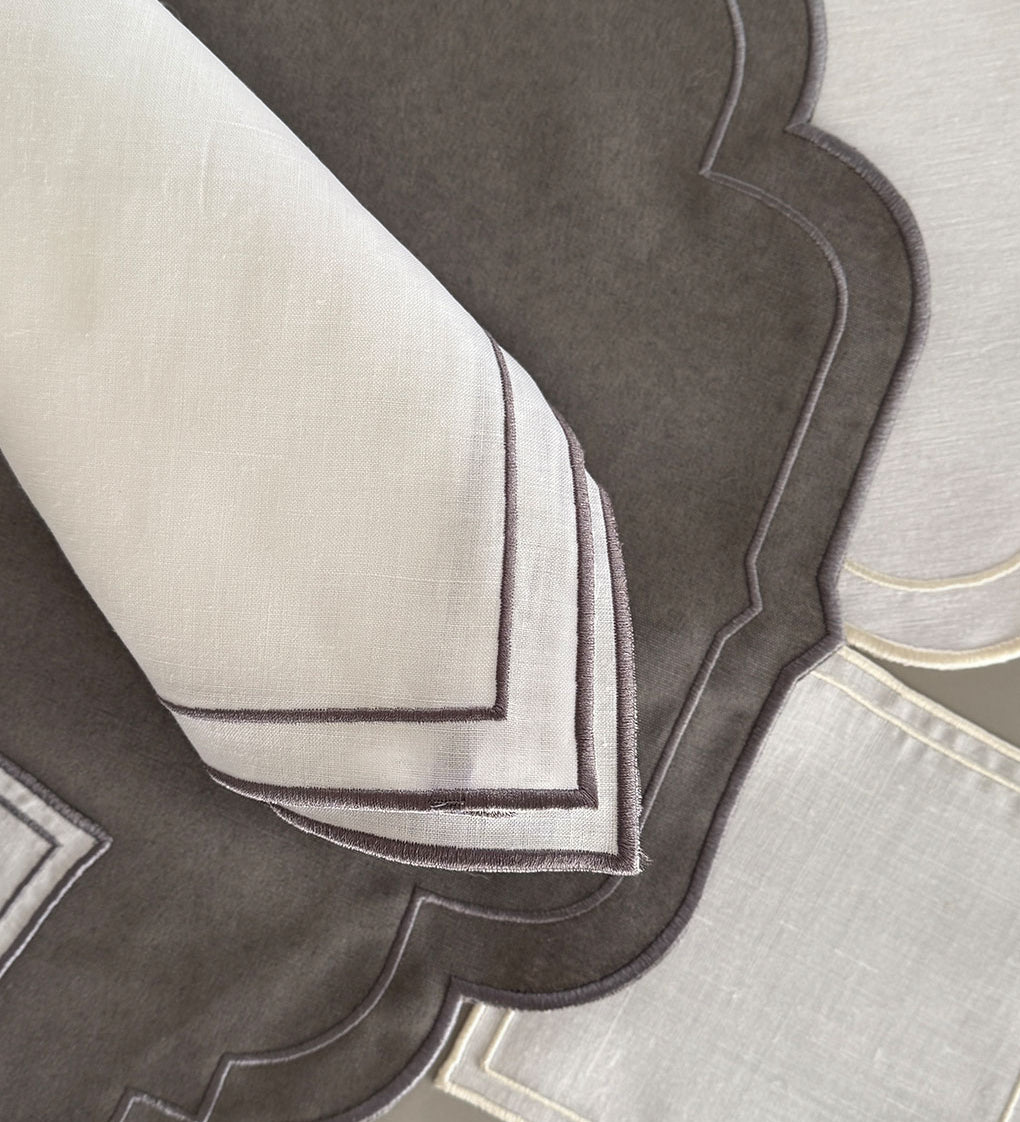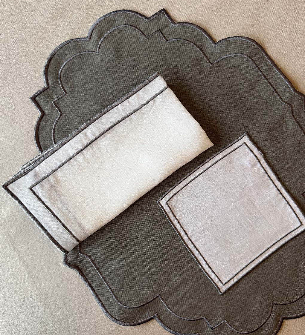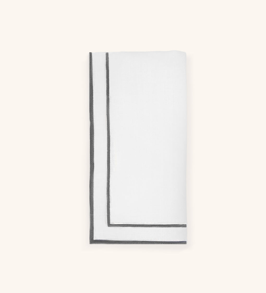 Servilletas Jimmy en Lino Blanco con Bordado Gris Oxford. Set de 4