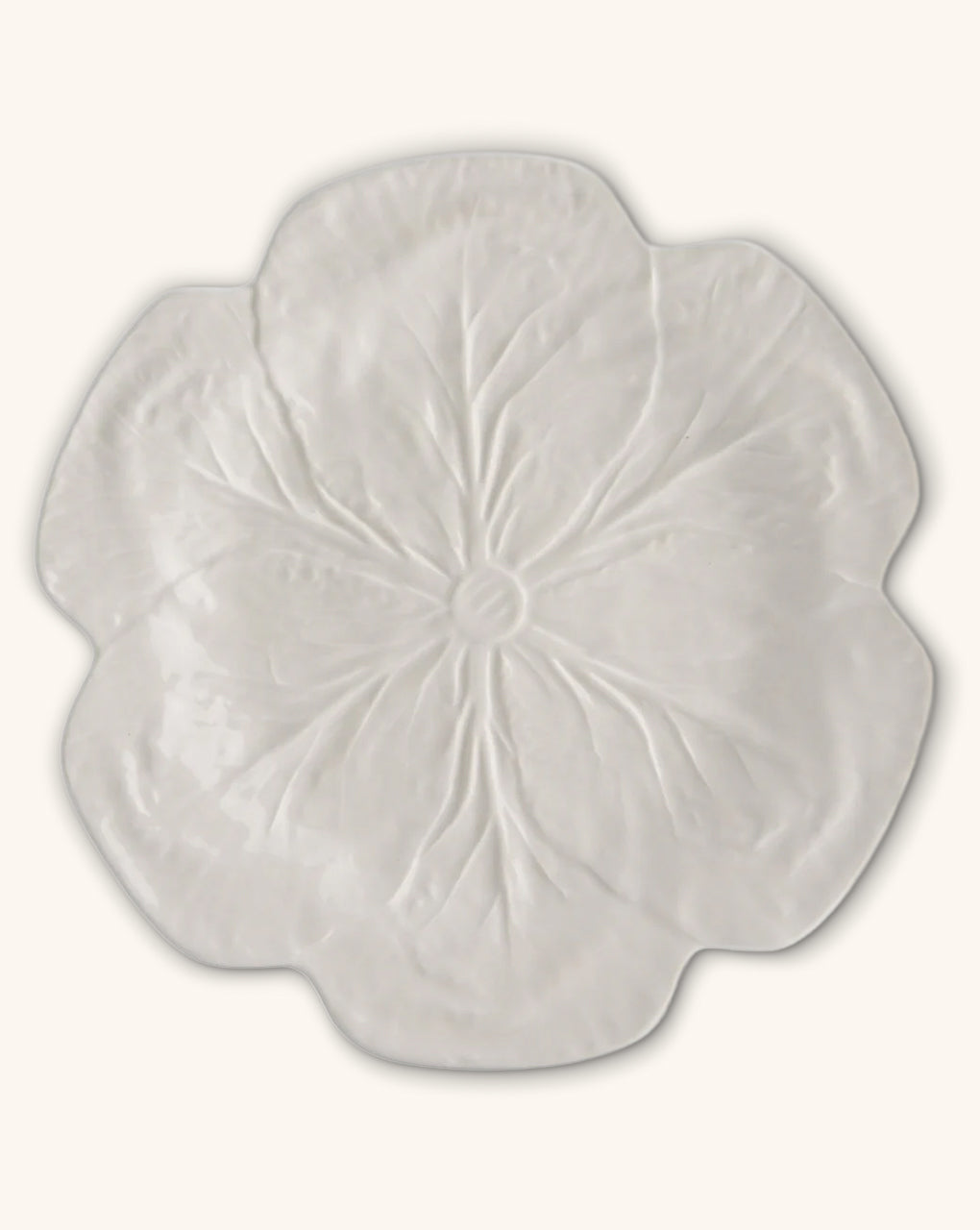El famoso diseño de Repollo de Bordallo Pinheiro en blanco. Un clásico para toda la vida, ideal para mix and match y para cualquier temporada.