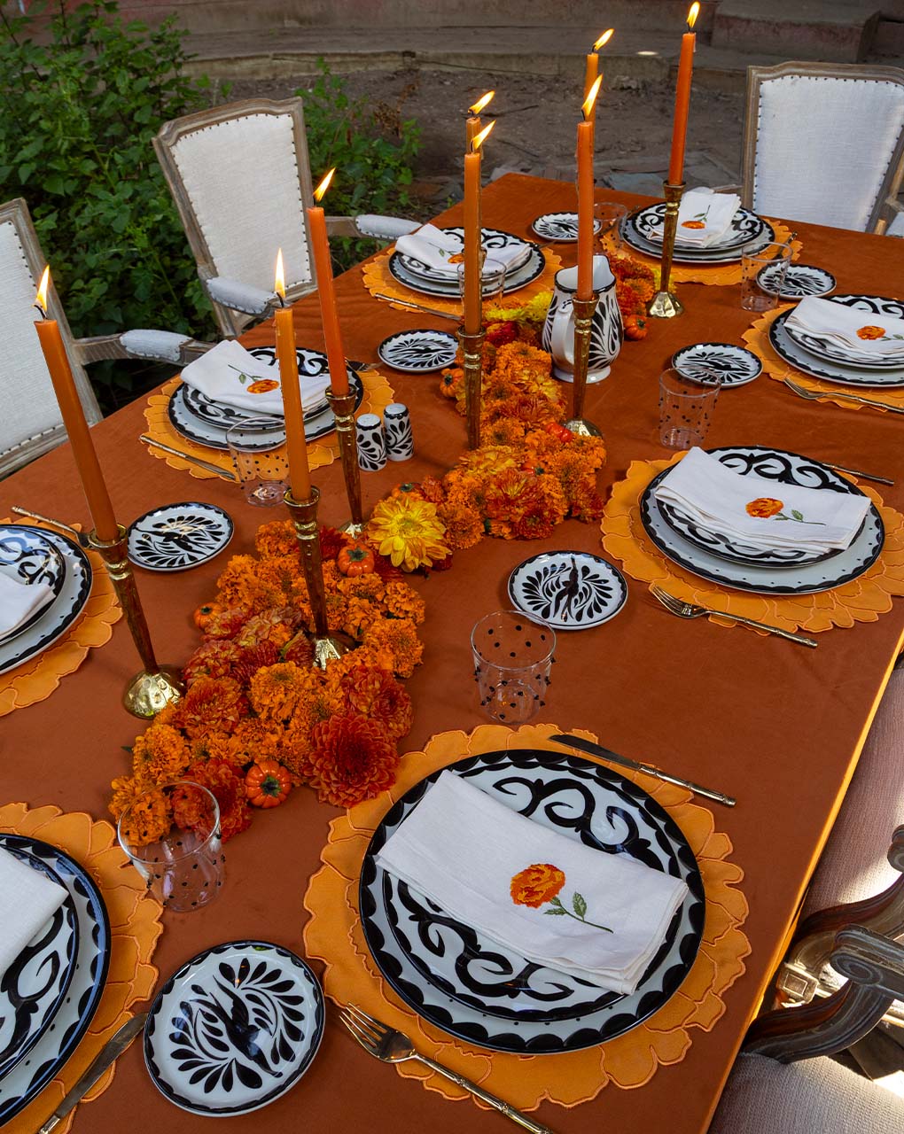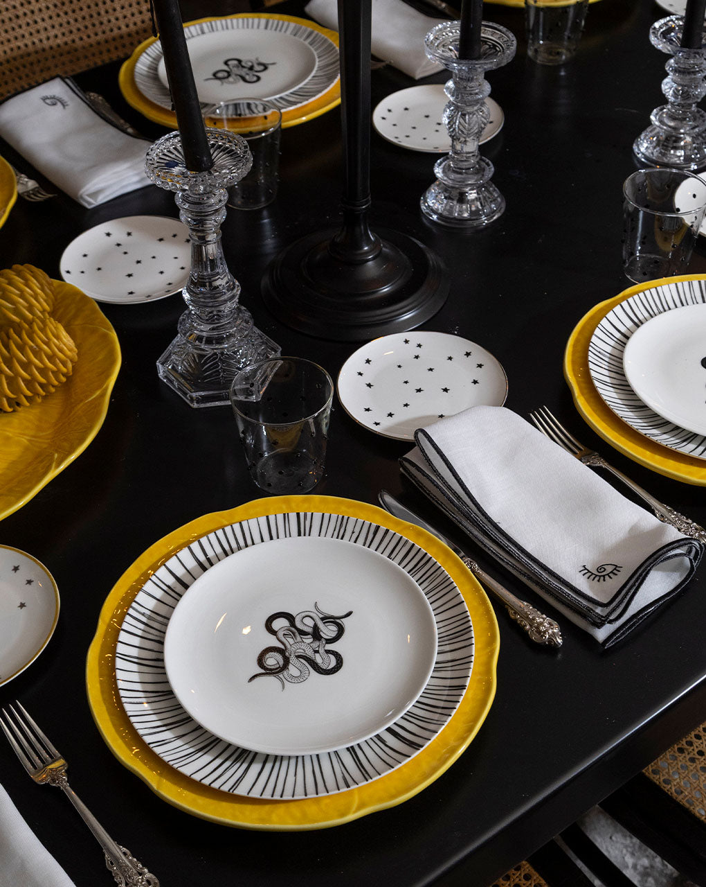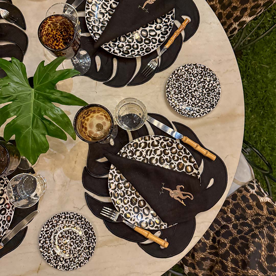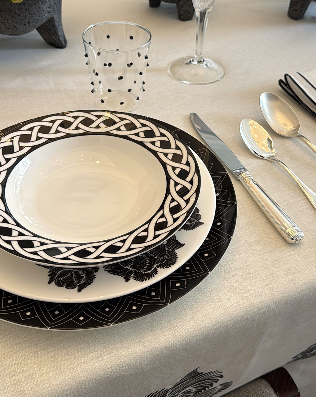 Platos Trinche Negro con Rayas Blancas, set de 4