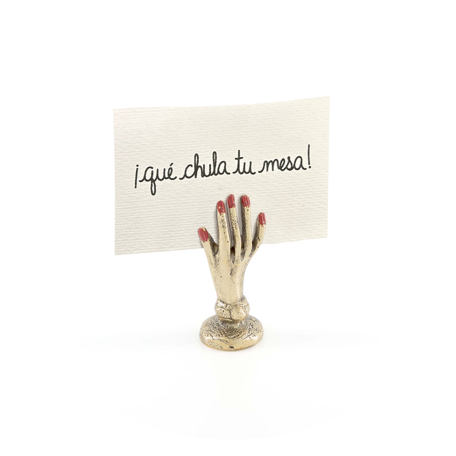 Tarjetero de Bronce en Forma de Mano con Uñas Pintadas. Set de 4