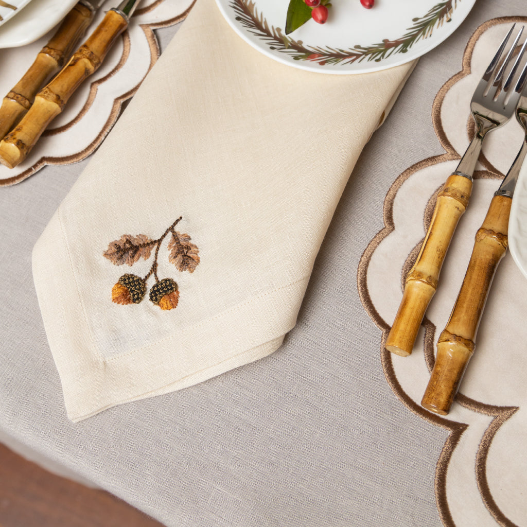 Juego de 4 Servilletas Aviva en Lino con Bellota Bordada.