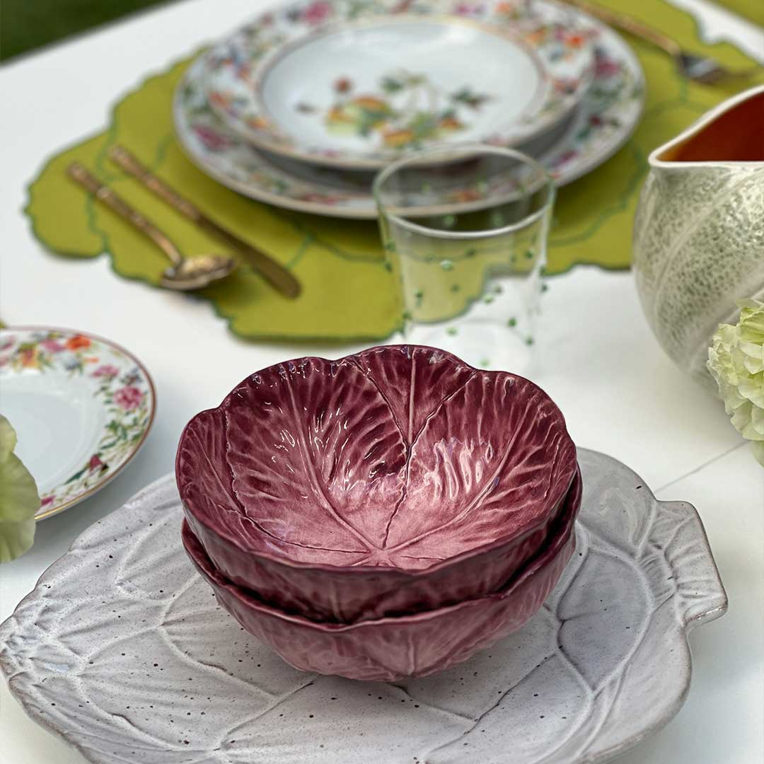Platos Trinche en Forma de Hoja de Repollo Morado de 24 cm. Set de 4