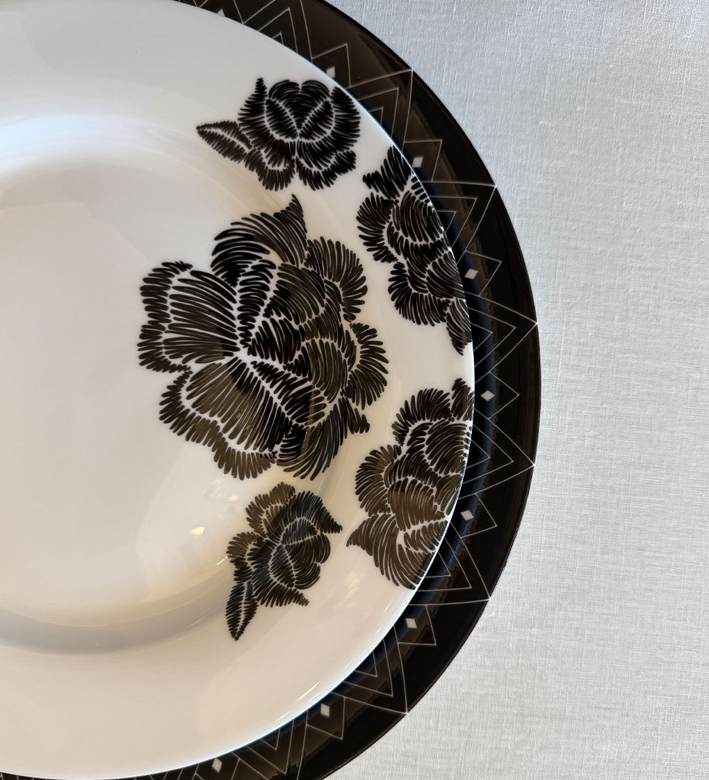 Plato Trinche 26 cm Puebla en Blanco y Negro. Set de 4