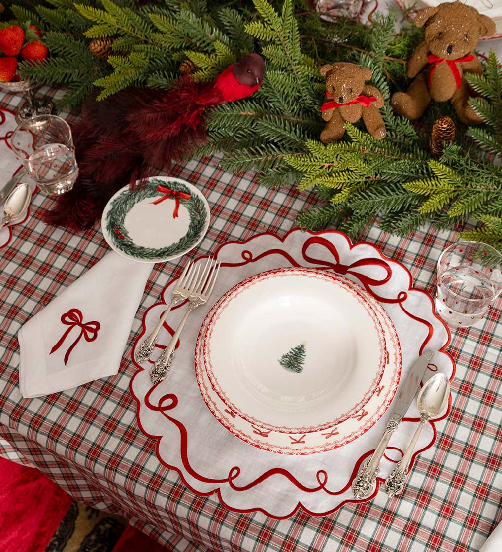 Plato Trinche con Guirnalda Roja de Moños. Set de 4