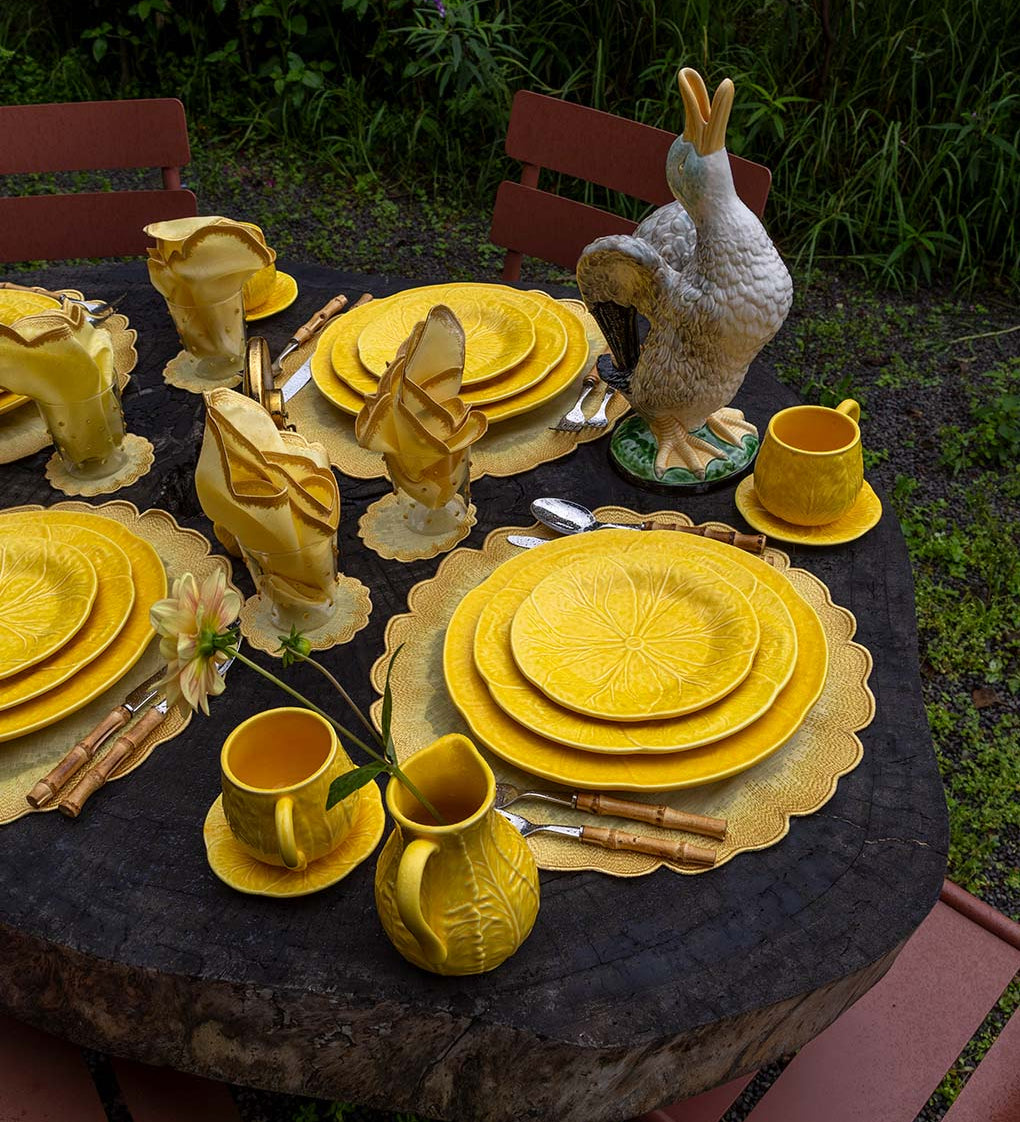 Plato Trinche de Repollo Amarillo Canario. Set de 4