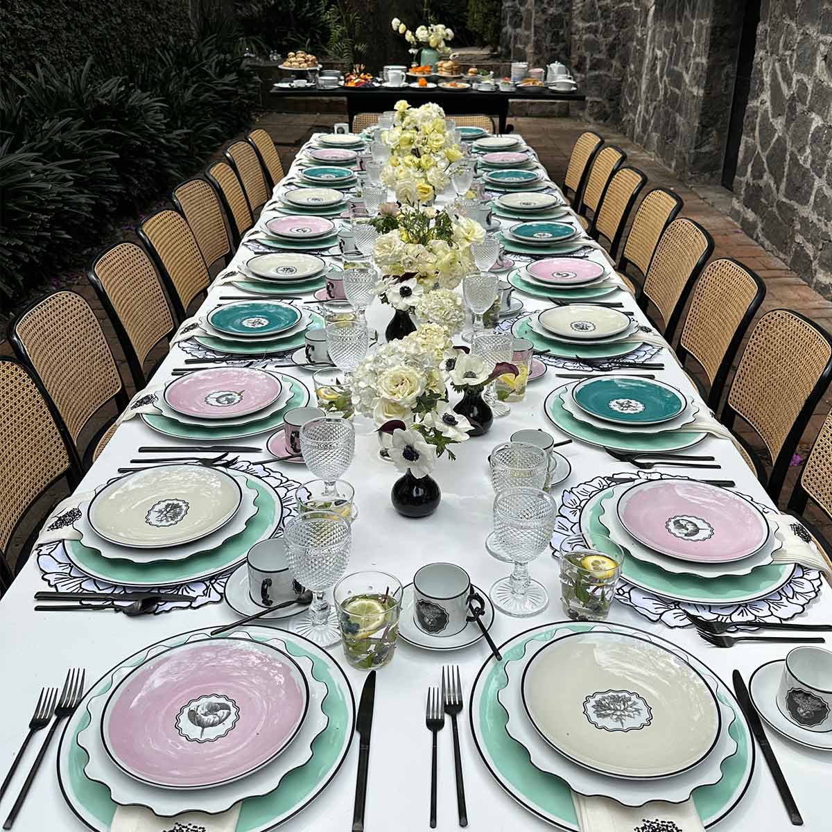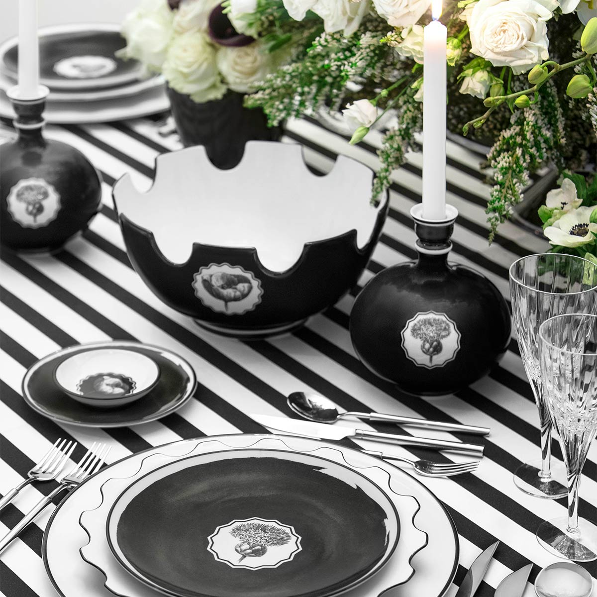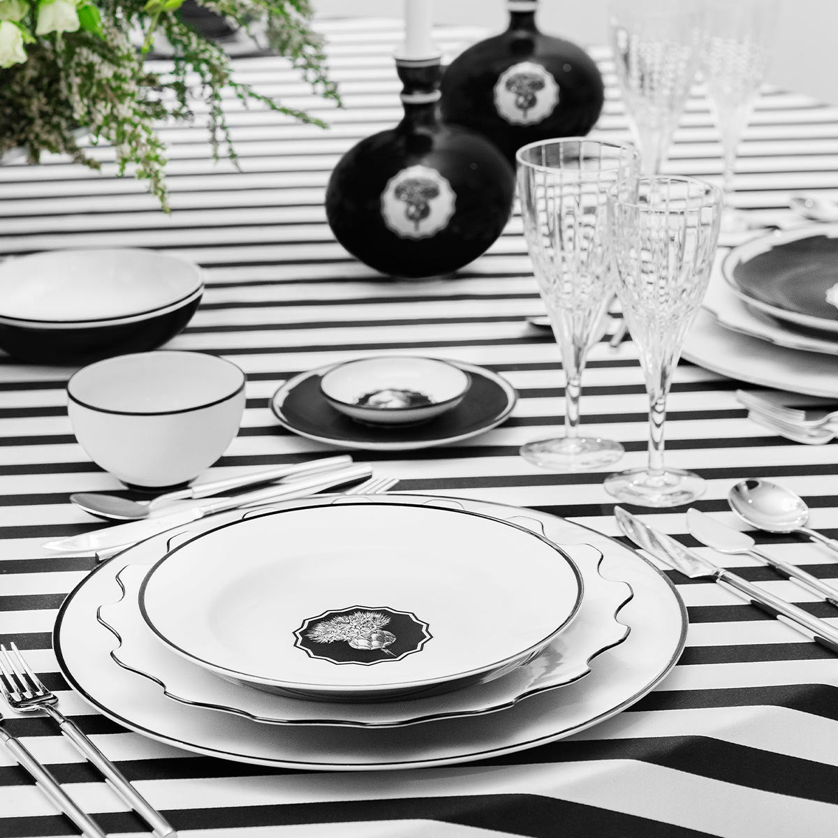 Plato trinche de porcelana en color banco con ondas de Vista Alegre en colaboración con Christian Lacroix Maison.