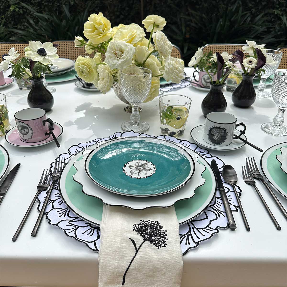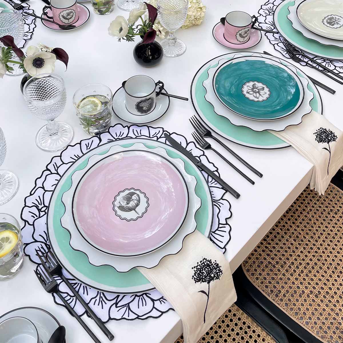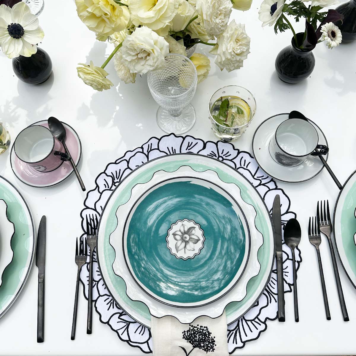 Plato trinche de porcelana en color banco con ondas de Vista Alegre en colaboración con Christian Lacroix Maison.