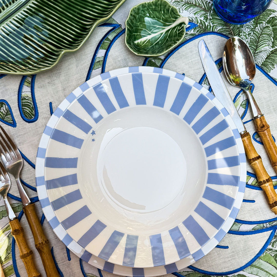 Vajilla con Plato Sopero Candy Cane Azul Claro y Platos Trinche Candy Cane Azul Claro. Set para 4 Personas