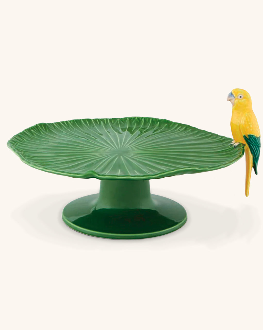 Pastelero verde de Pájaro de la marca portuguesa Bordallo Pinheiro. El statement piece ideal para tu mesa.
