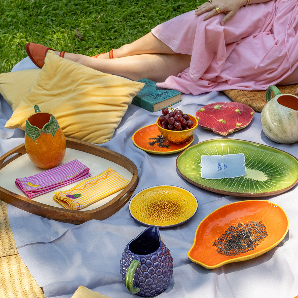 Servilletas Tutti Frutti en Mascota de Algodón de Colores con Bordado de Frutas. Set de 4